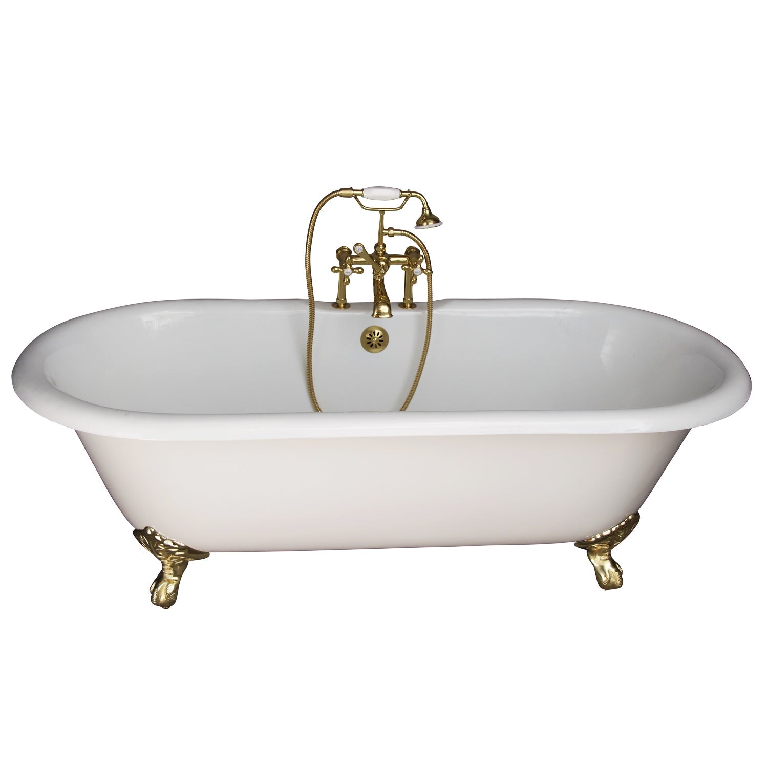 Duet 67" Cast Iron Double Roll Top Tub Kit-Polished Brass Accessories