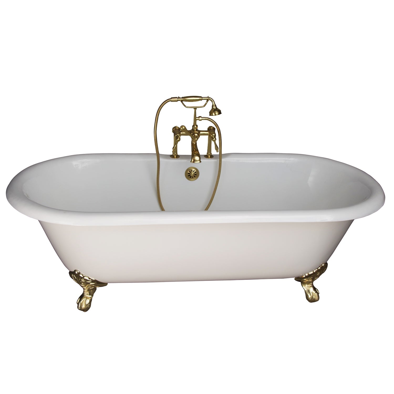 Duet 67" Cast Iron Double Roll Top Tub Kit-Polished Brass Accessories