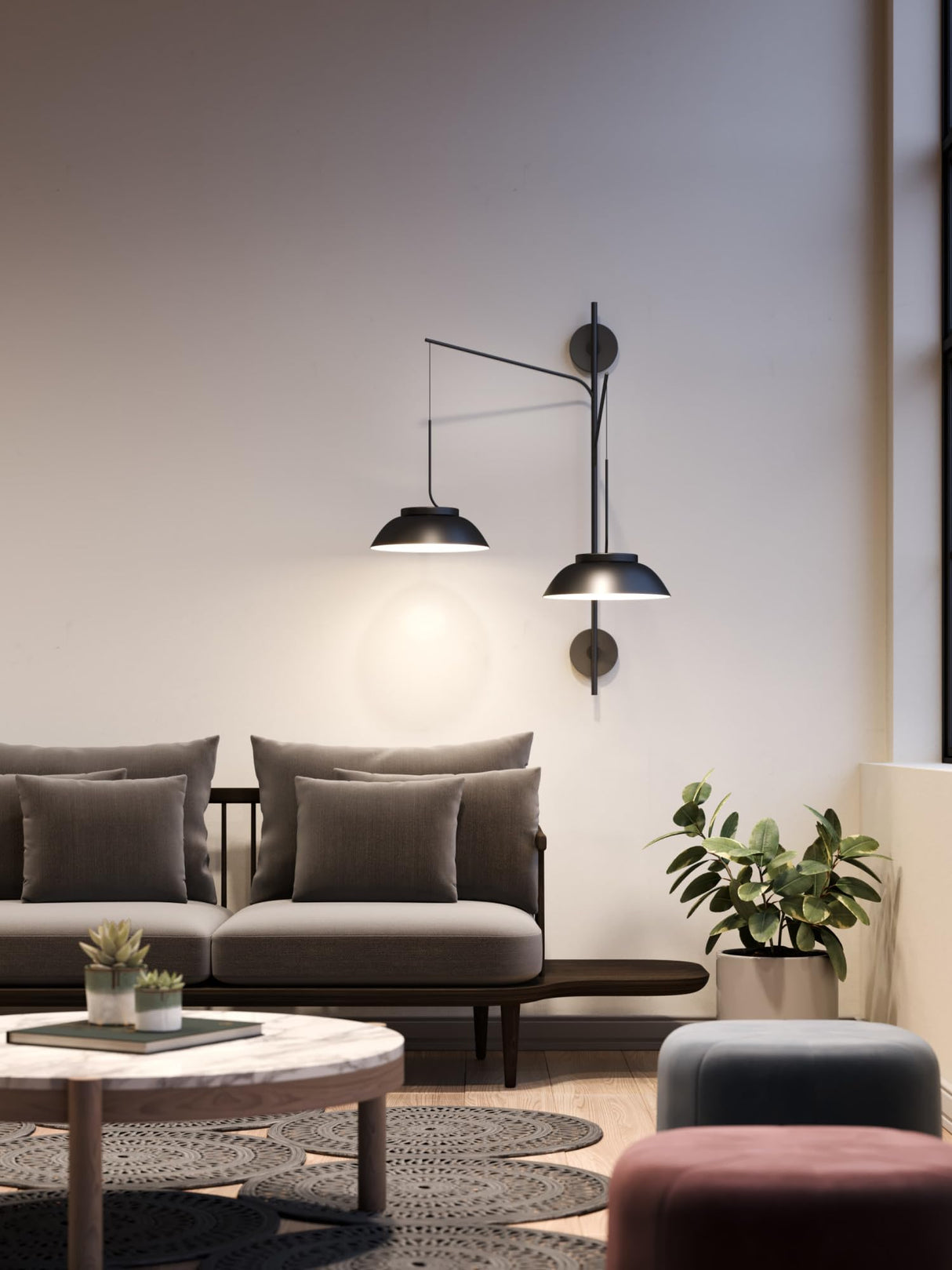 Kuzco WS51202-BK/WH MAGELLAN 12" DOUBLE WALL SCONCE OUTER BLACK INNER WHITE SHADE 30W 120VAC WITH LED DRIVER 3000K 90CRI