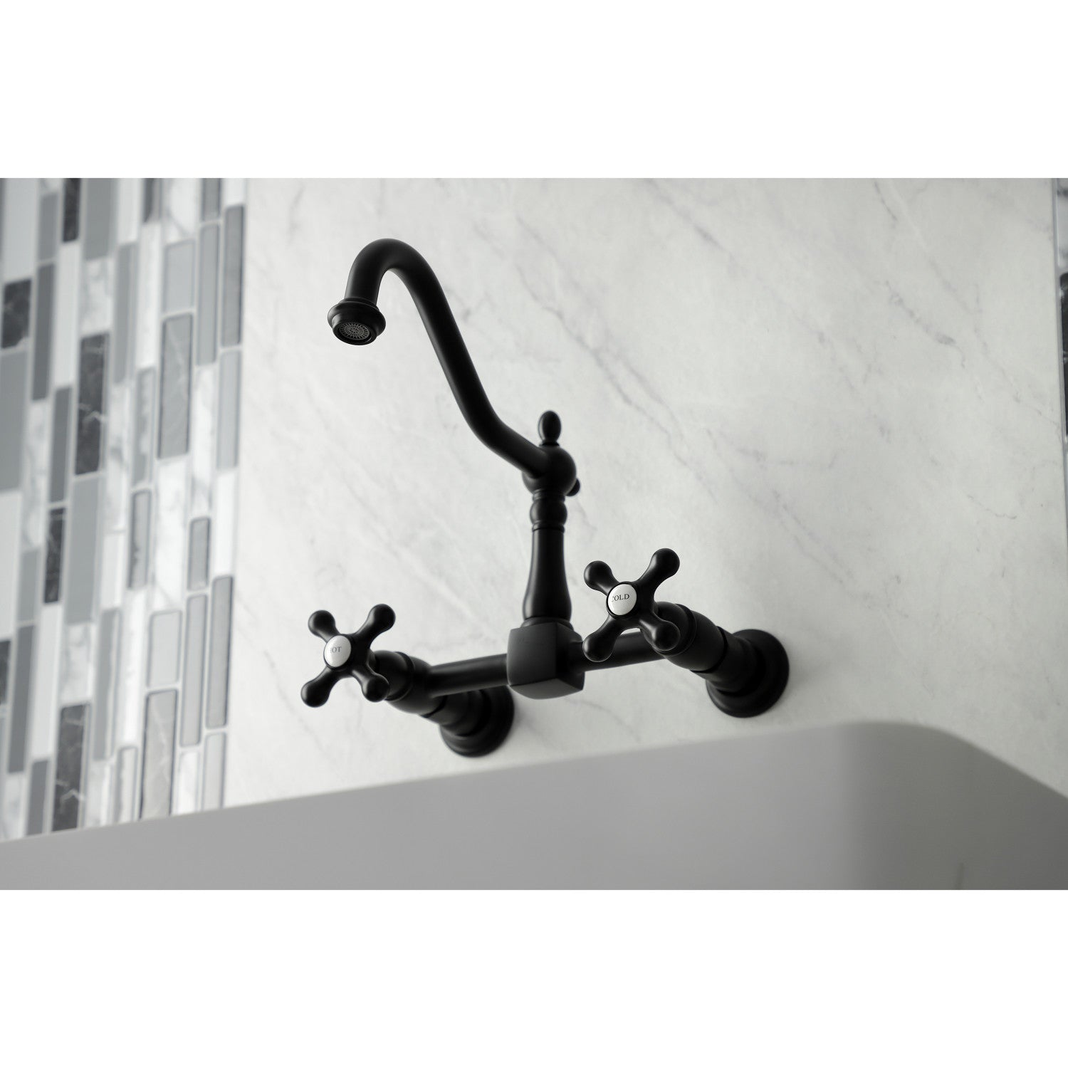 Heritage KS1240AX Two-Handle 2-Hole Wall Mount Bridge Kitchen Faucet, Matte Black