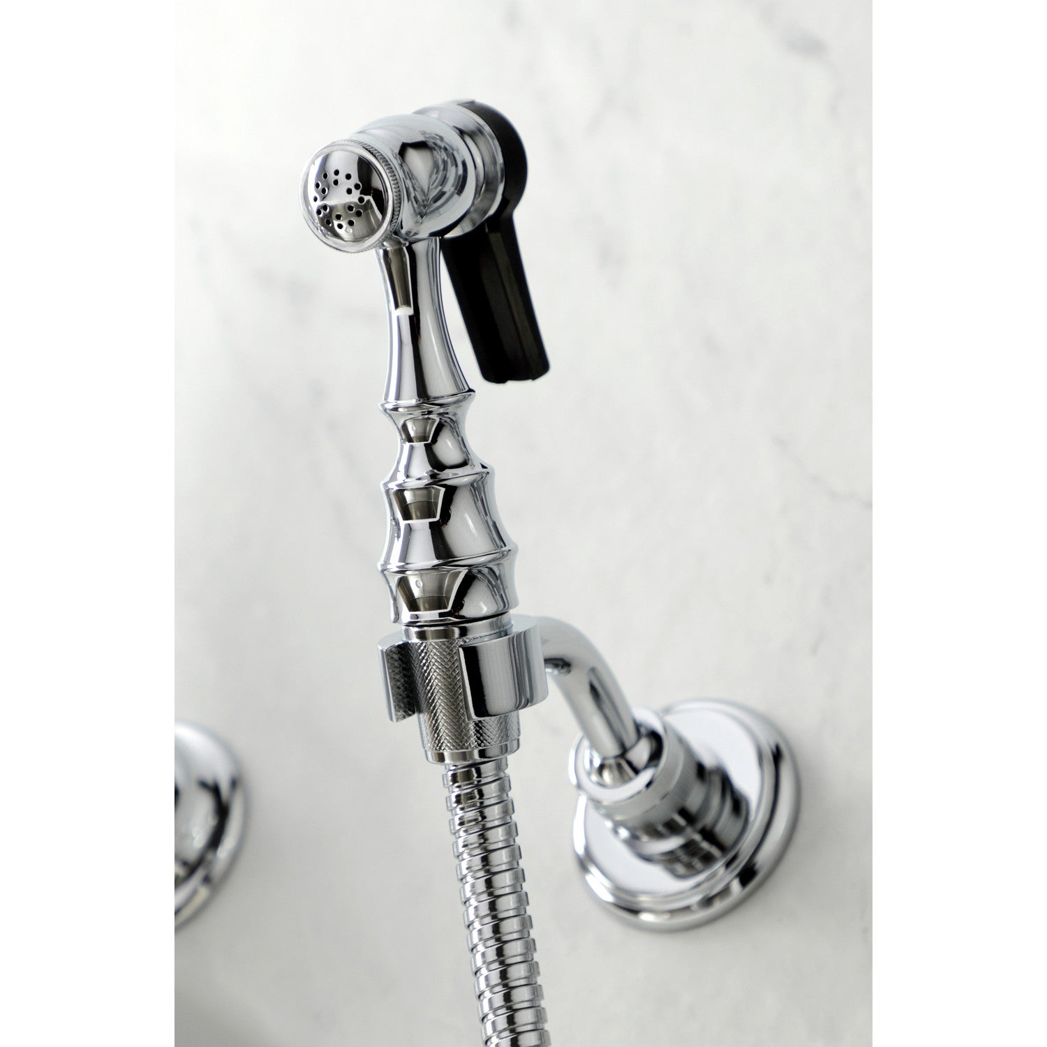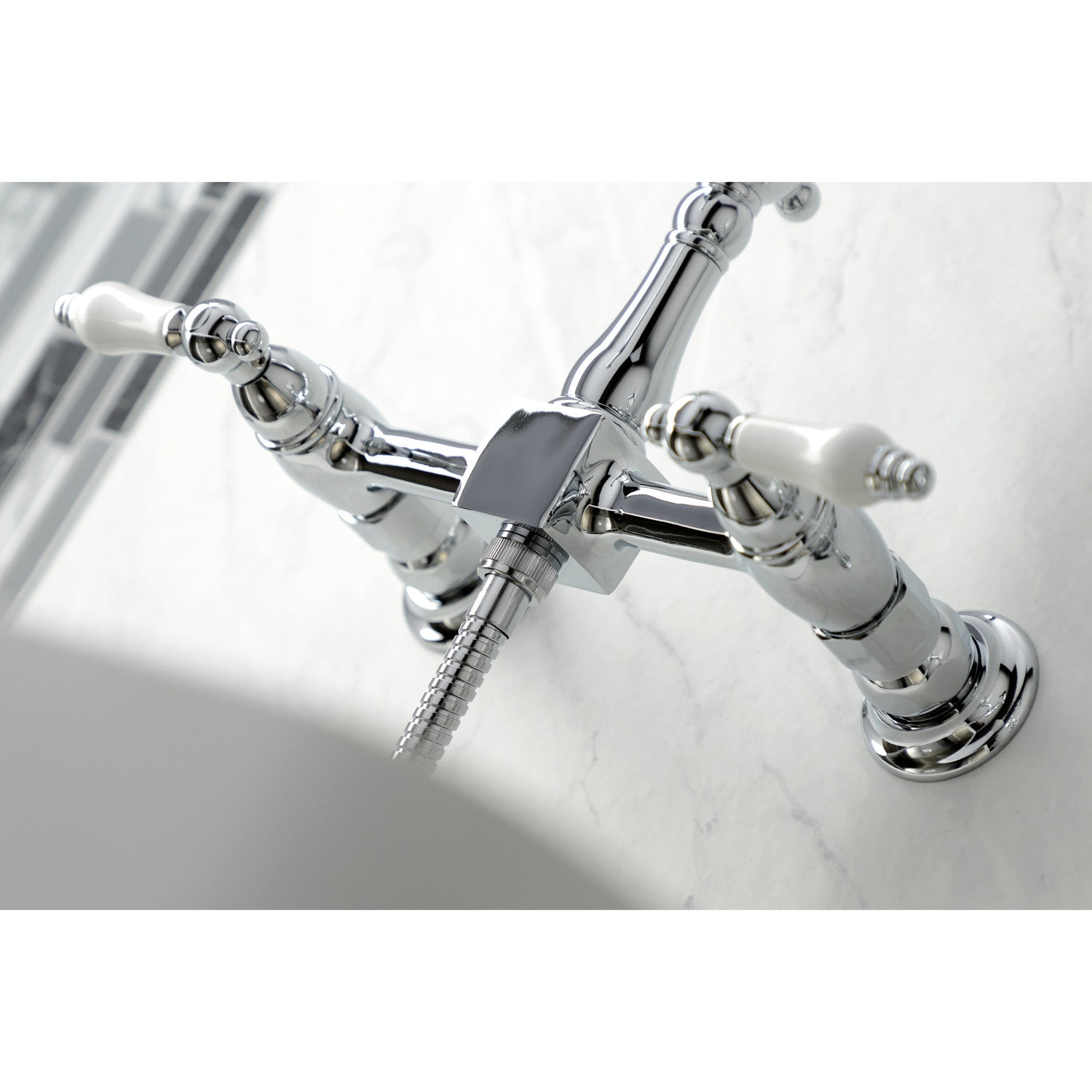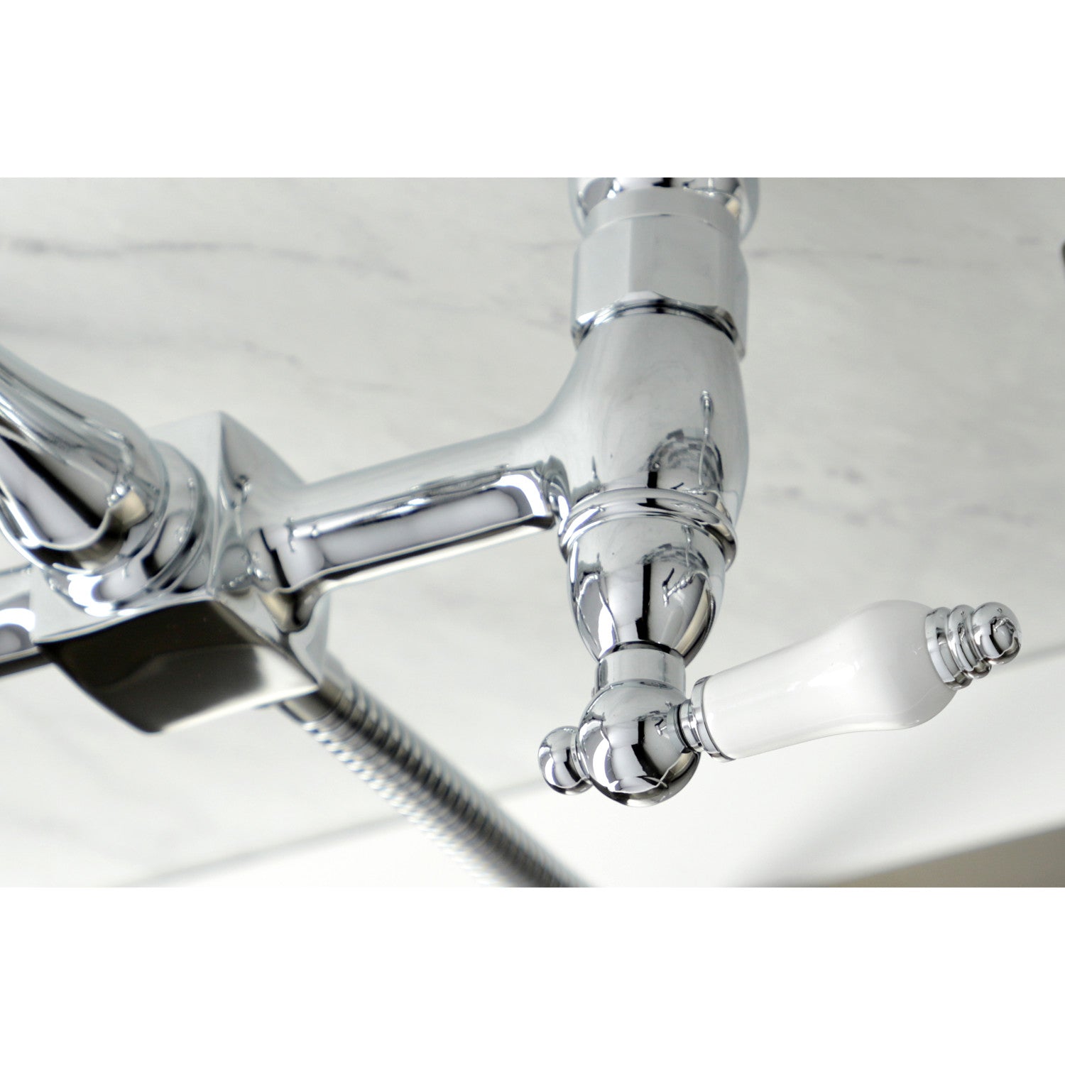 Heritage KS1261PLBS Two-Handle 2-Hole Wall Mount Bridge Kitchen Faucet with Brass Sprayer, Polished Chrome