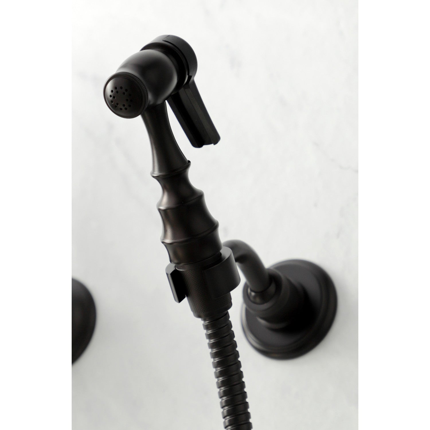 Heritage KS1265ALBS Two-Handle 2-Hole Wall Mount Bridge Kitchen Faucet with Brass Sprayer, Oil Rubbed Bronze