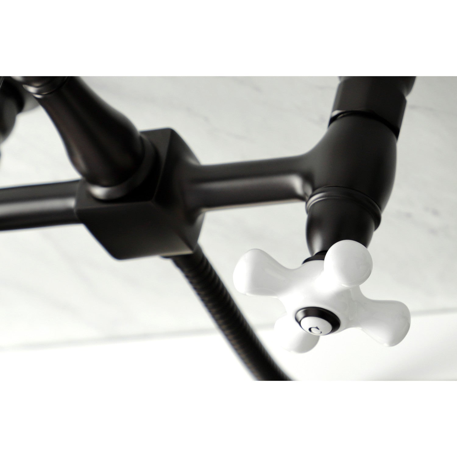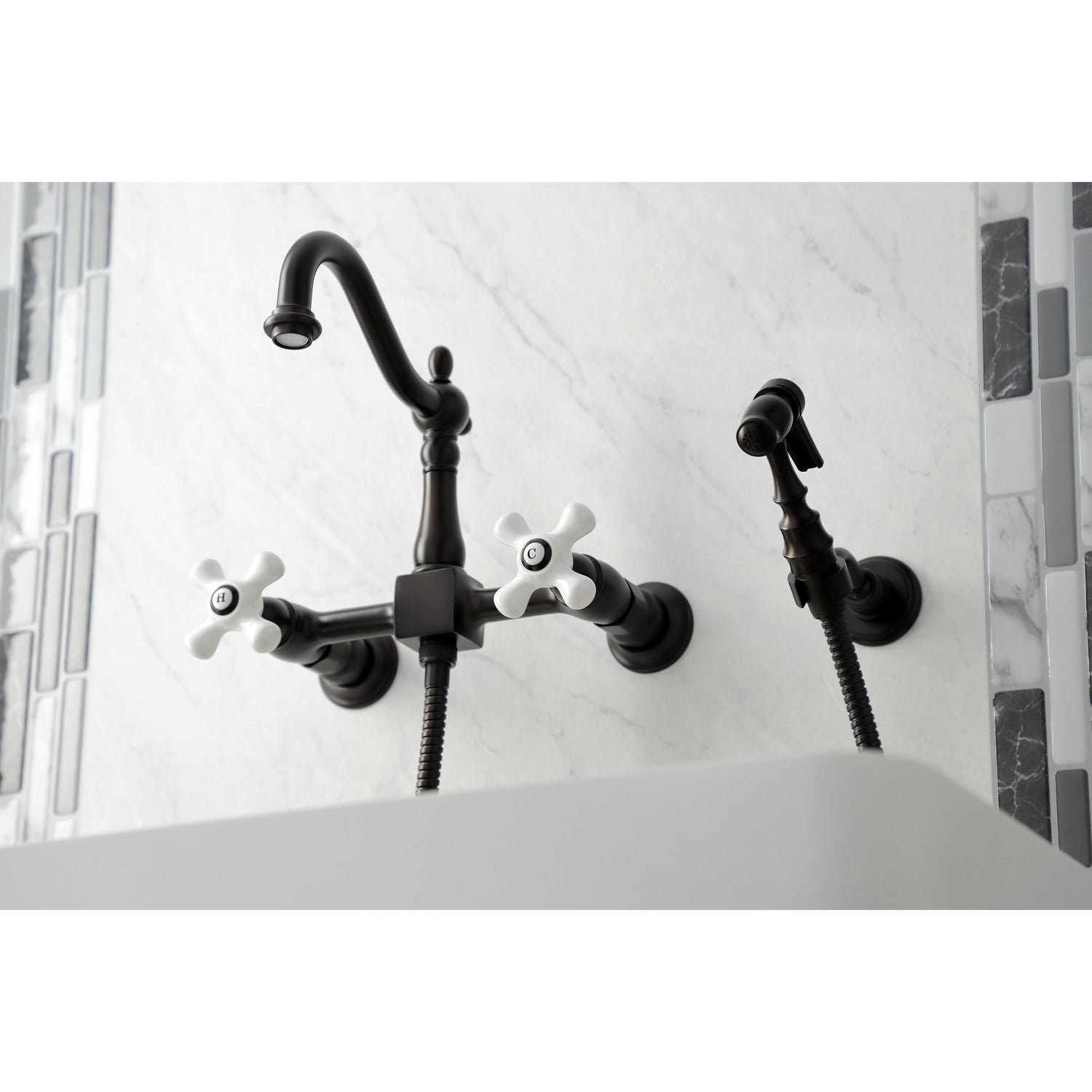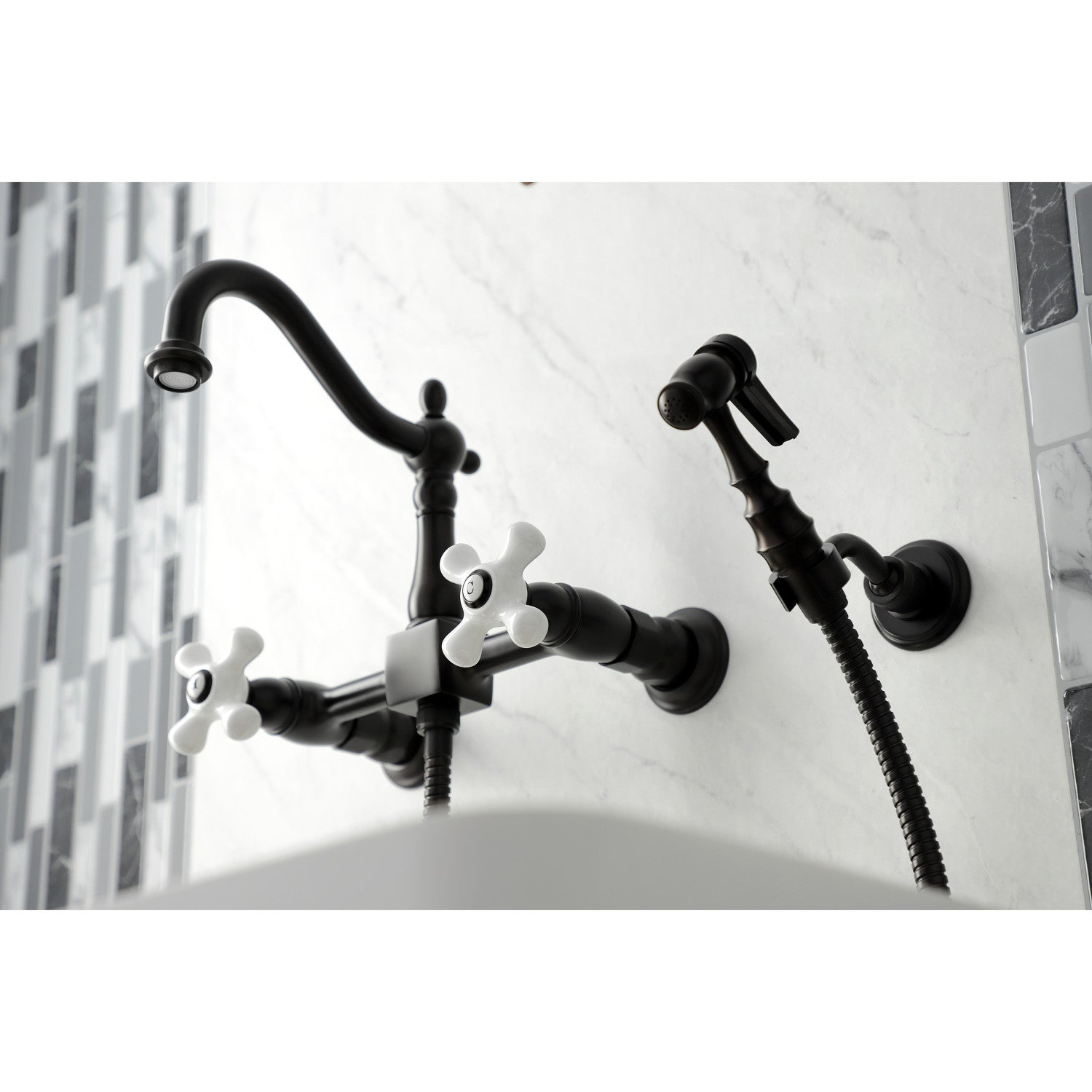 Heritage KS1265PXBS Two-Handle 2-Hole Wall Mount Bridge Kitchen Faucet with Brass Sprayer, Oil Rubbed Bronze