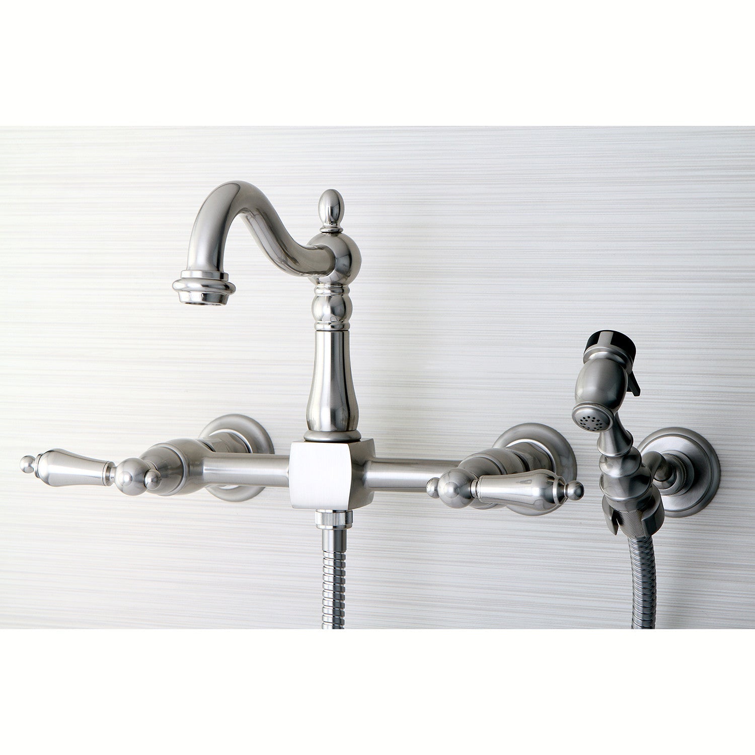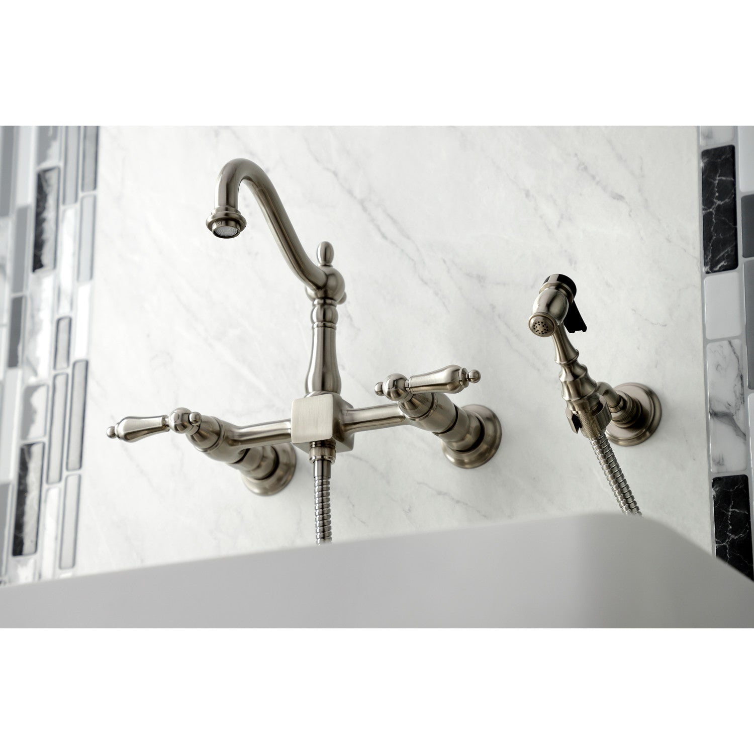 Heritage KS1268ALBS Two-Handle 2-Hole Wall Mount Bridge Kitchen Faucet with Brass Sprayer, Brushed Nickel