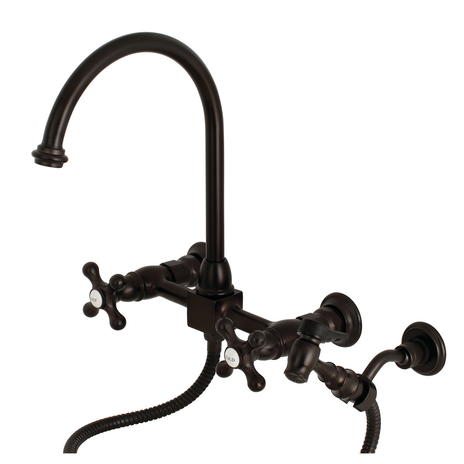 Restoration KS1295AXBS Two-Handle 2-Hole Wall Mount Bridge Kitchen Faucet with Brass Sprayer, Oil Rubbed Bronze