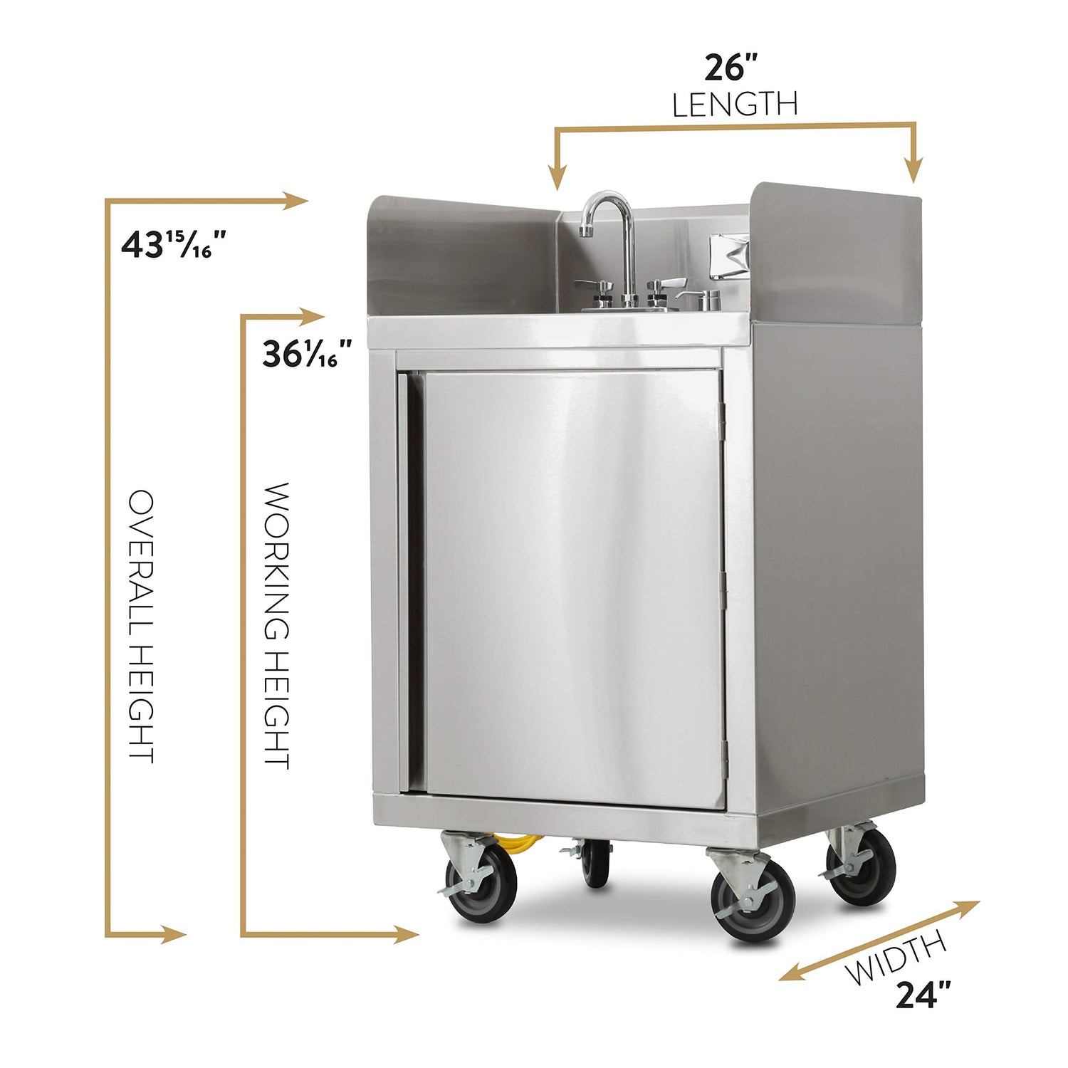 John Boos MHS-2624 Commercial Stainless Steel Mobile Hand Wash Station with Integrated 2.5 Gallon Water Heater, 5 Clean and 6 Gray Tanks