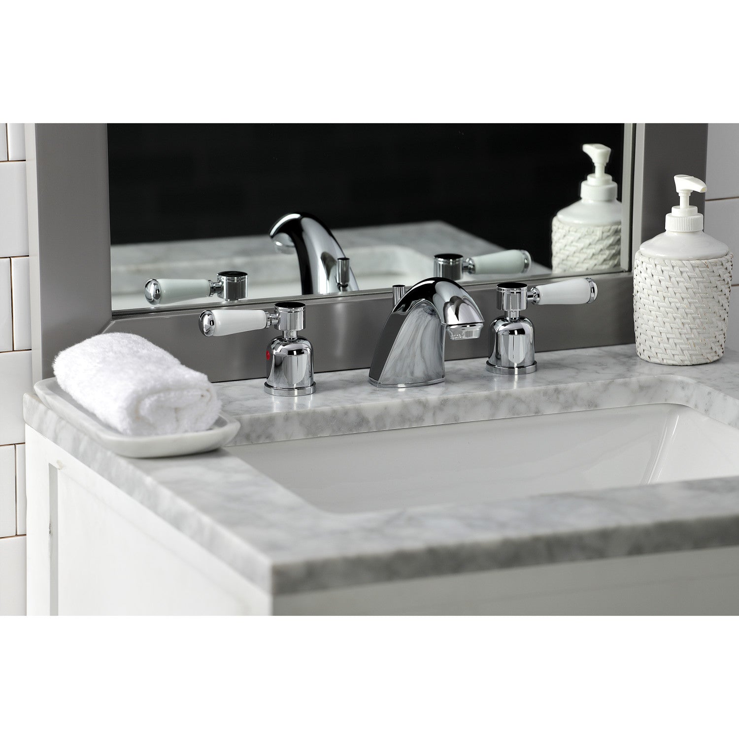 Crafted to bring aesthetic beauty alongside exceptional performance, the feature of porcelain lever handles and rounded architecture solidifies pristine refinement in this faucet. Ideal for more spacious bathrooms, widespread faucets are more spread apart and feature a 3-hole installation. The Paris widespread bathroom faucet and its featured sturdy brass construction and premium polished chrome finish are guaranteed to glamorize your home's modern ensemble for years to come. Embolden your home ensemble with the addition of this exquisite fixture. A matching finish drain is also included.