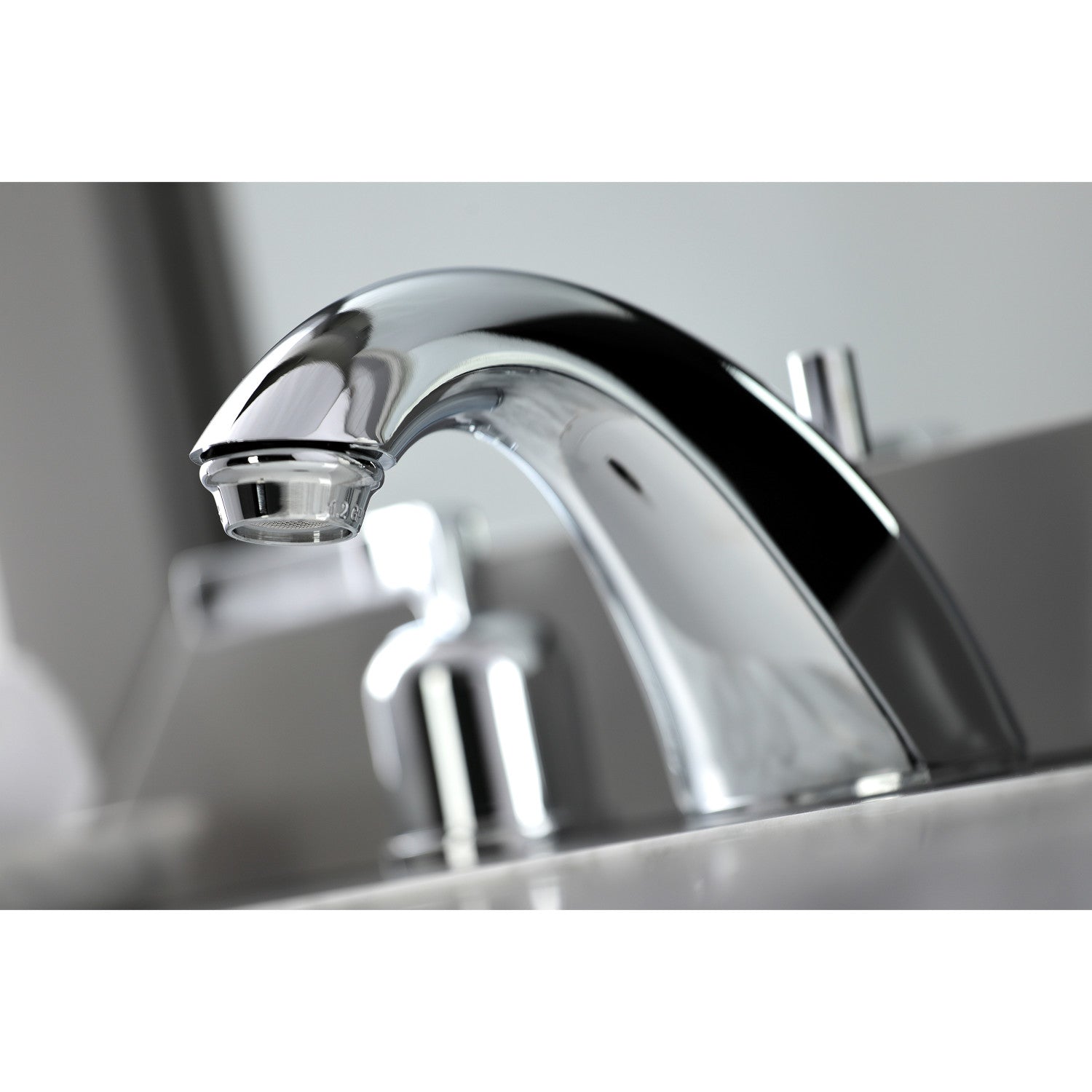 The innovative, sleek design of this faucet will enhance contemporary decor. Ideal for more spacious bathrooms, widespread faucets are more spread apart and feature a 3-hole installation. The Centurion widespread bathroom faucet and its featured sturdy brass construction and premium polished chrome finish are guaranteed to glamorize your home's modern ensemble for years to come. Upgrade your contemporary home into a place of elite sophistication with this faucet. A matching finish drain is also included.