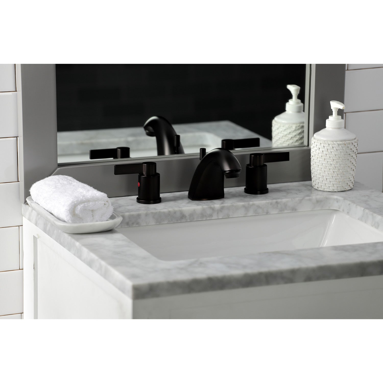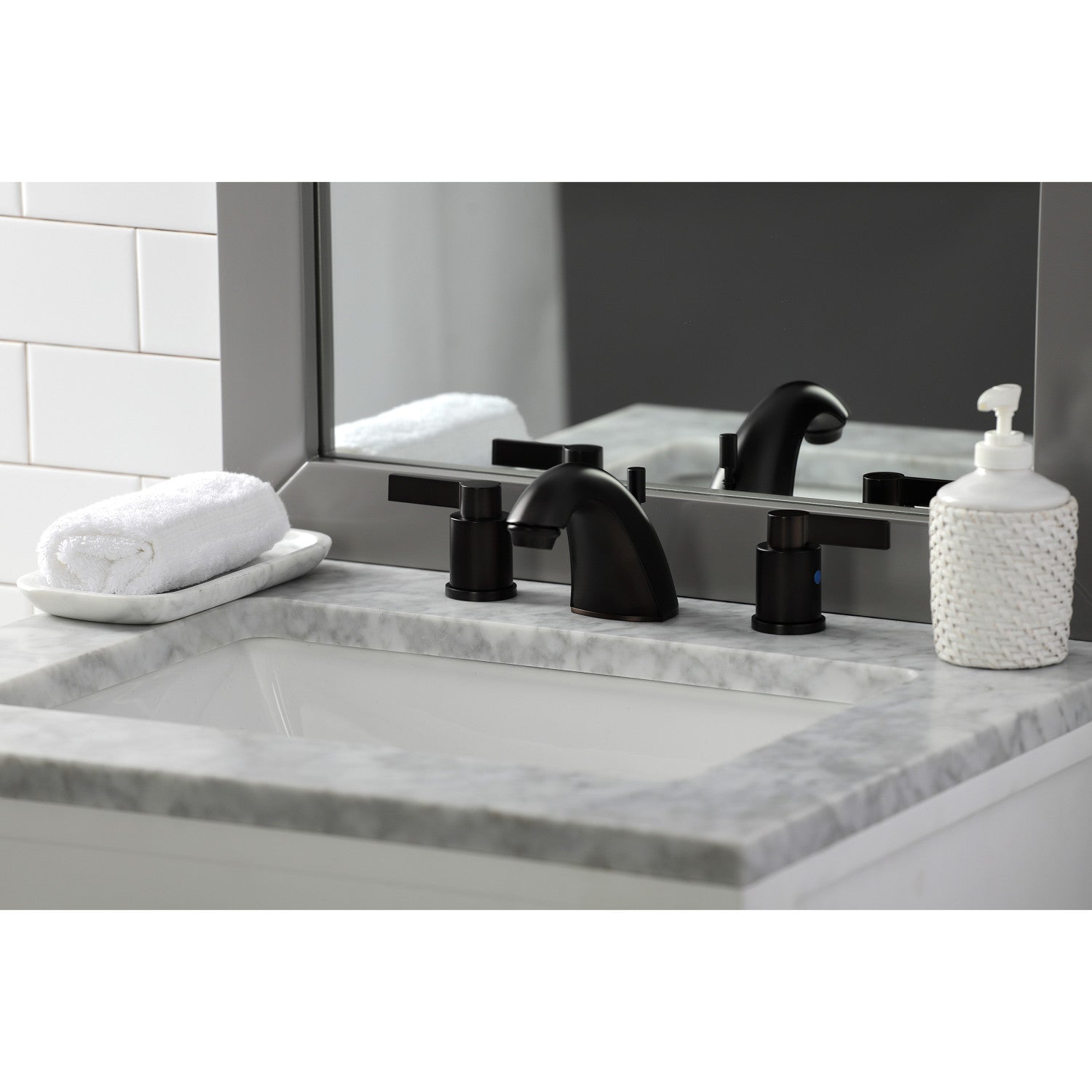 The chic fashion of this faucet is distinguished by its expressive artistry and flat, ergonomic levers. Ideal for more spacious bathrooms, widespread faucets are more spread apart and feature a 3-hole installation. The NuvoFusion widespread bathroom faucet and its featured sturdy brass construction and premium oil rubbed bronze finish are guaranteed to glamorize your home's modern ensemble for years to come. Revive the obsolete with the illustrious prestige of this fixture. A matching finish drain is also included.