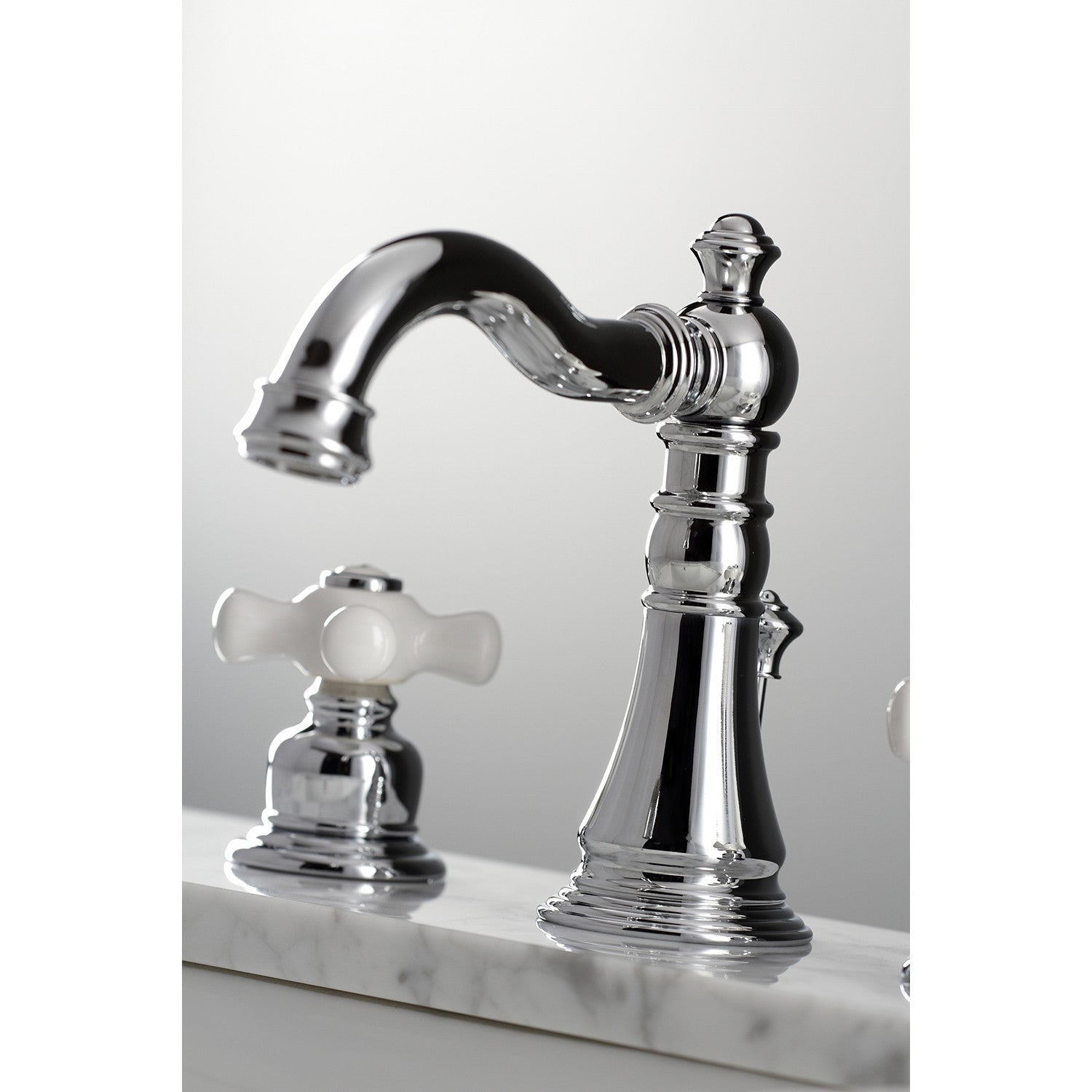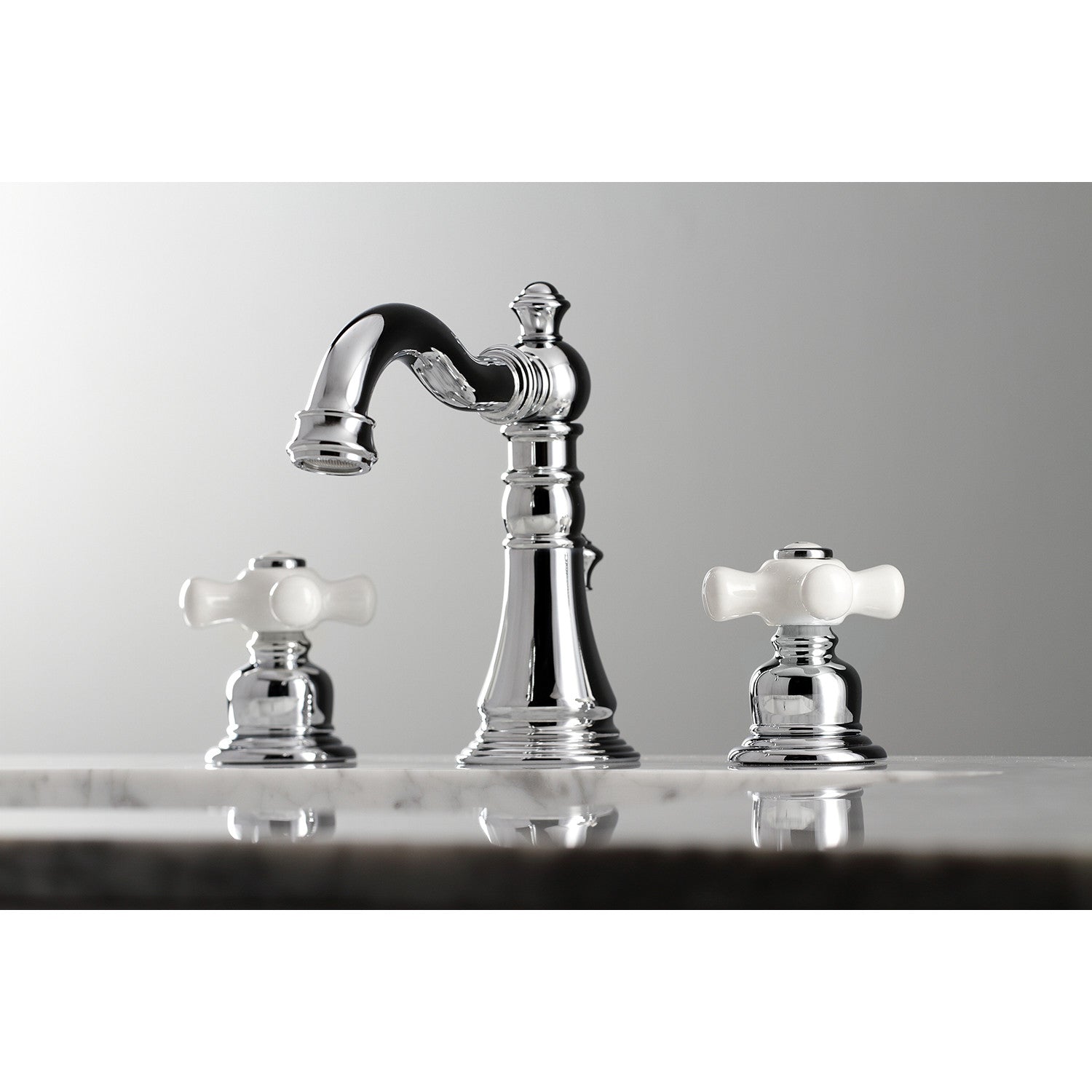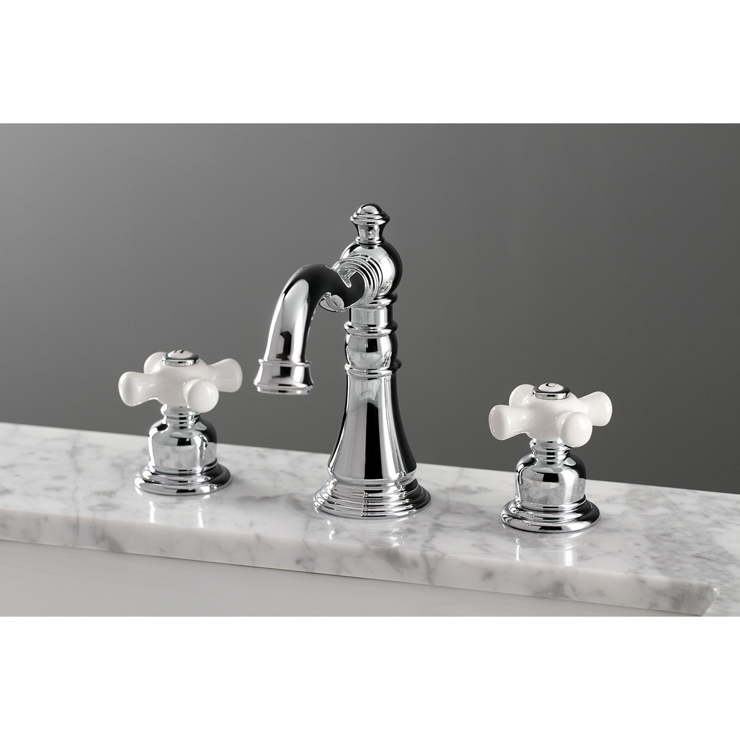 This faucet is perfect for those seeking inspiration from the exquisite artistry and architecture of the traditional Victorian era. Ideal for more spacious bathrooms, widespread faucets are more spread apart and feature a 3-hole installation. The American Classic widespread bathroom faucet and its featured sturdy brass construction and premium polished chrome finish are guaranteed to glamorize your home's traditional ensemble for years to come. This faucet will surely personify any homeowner's refined tastes with its regal qualities. A matching finish drain is also included.