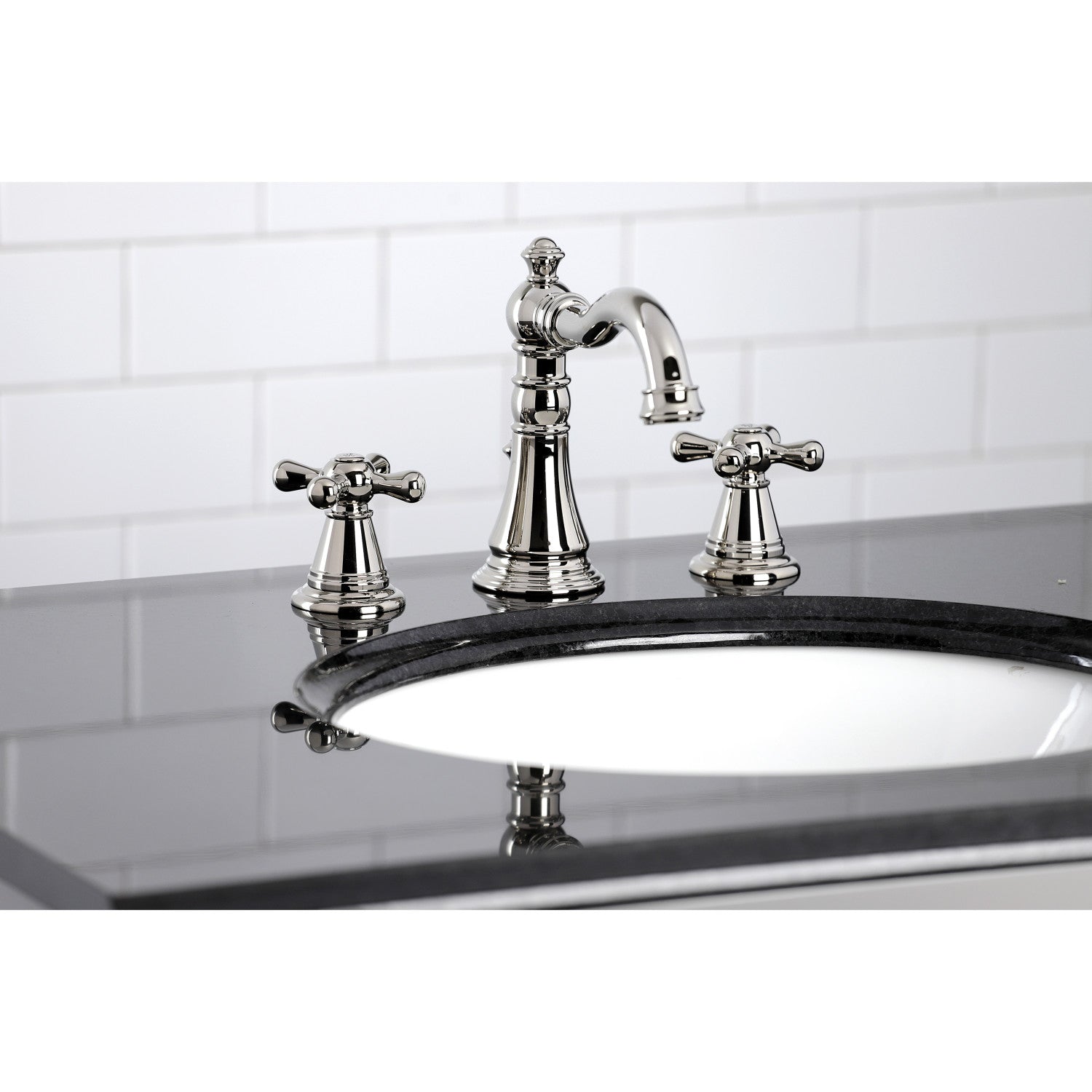 This faucet is perfect for those seeking inspiration from the exquisite artistry and architecture of the traditional Victorian era. Ideal for more spacious bathrooms, widespread faucets are more spread apart and feature a 3-hole installation. The American Classic widespread bathroom faucet and its featured sturdy brass construction and premium polished nickel finish are guaranteed to glamorize your home's traditional ensemble for years to come. This faucet will surely personify any homeowner's refined tastes with its regal qualities. A matching finish drain is also included.