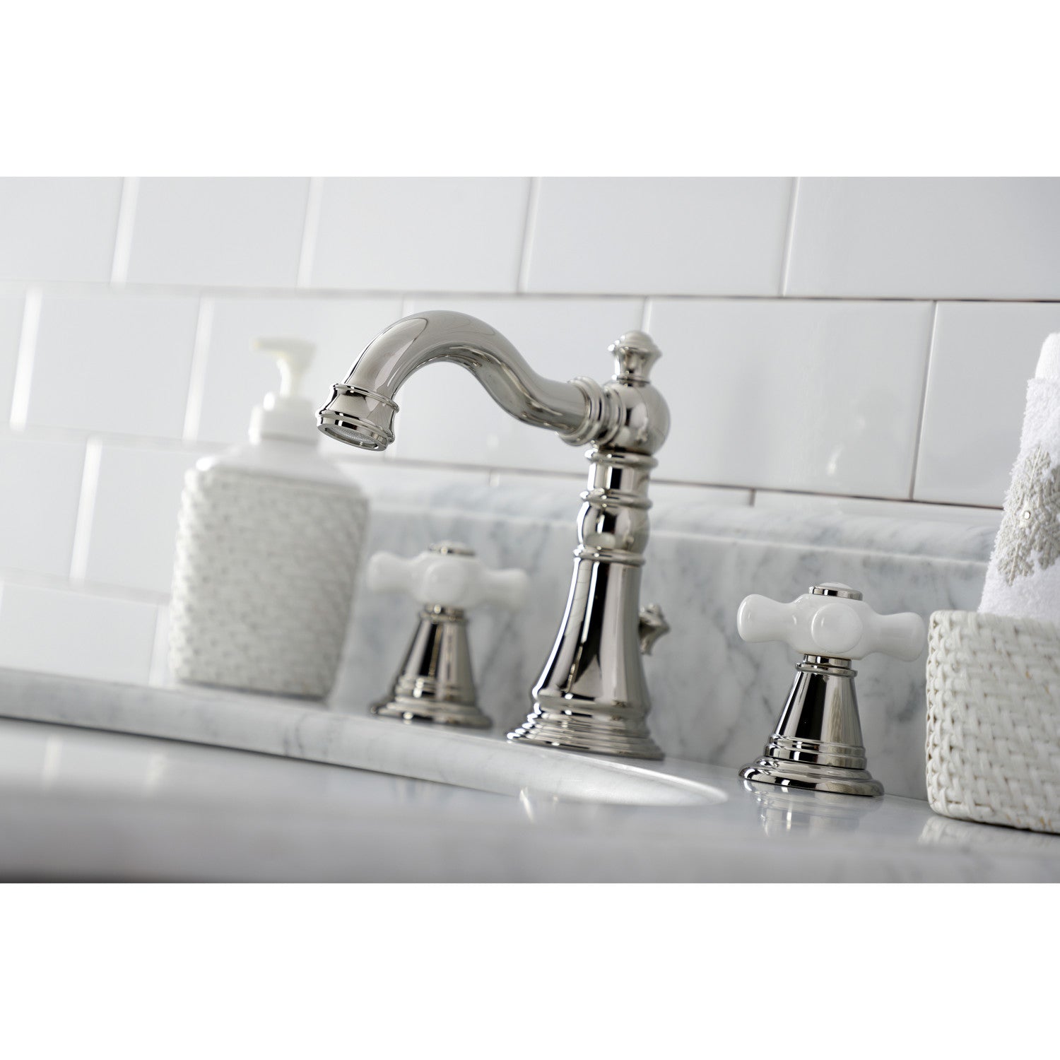 This faucet is perfect for those seeking inspiration from the exquisite artistry and architecture of the traditional Victorian era. Ideal for more spacious bathrooms, widespread faucets are more spread apart and feature a 3-hole installation. The American Classic widespread bathroom faucet and its featured sturdy brass construction and premium polished nickel finish are guaranteed to glamorize your home's traditional ensemble for years to come. This faucet will surely personify any homeowner's refined tastes with its regal qualities. A matching finish drain is also included.