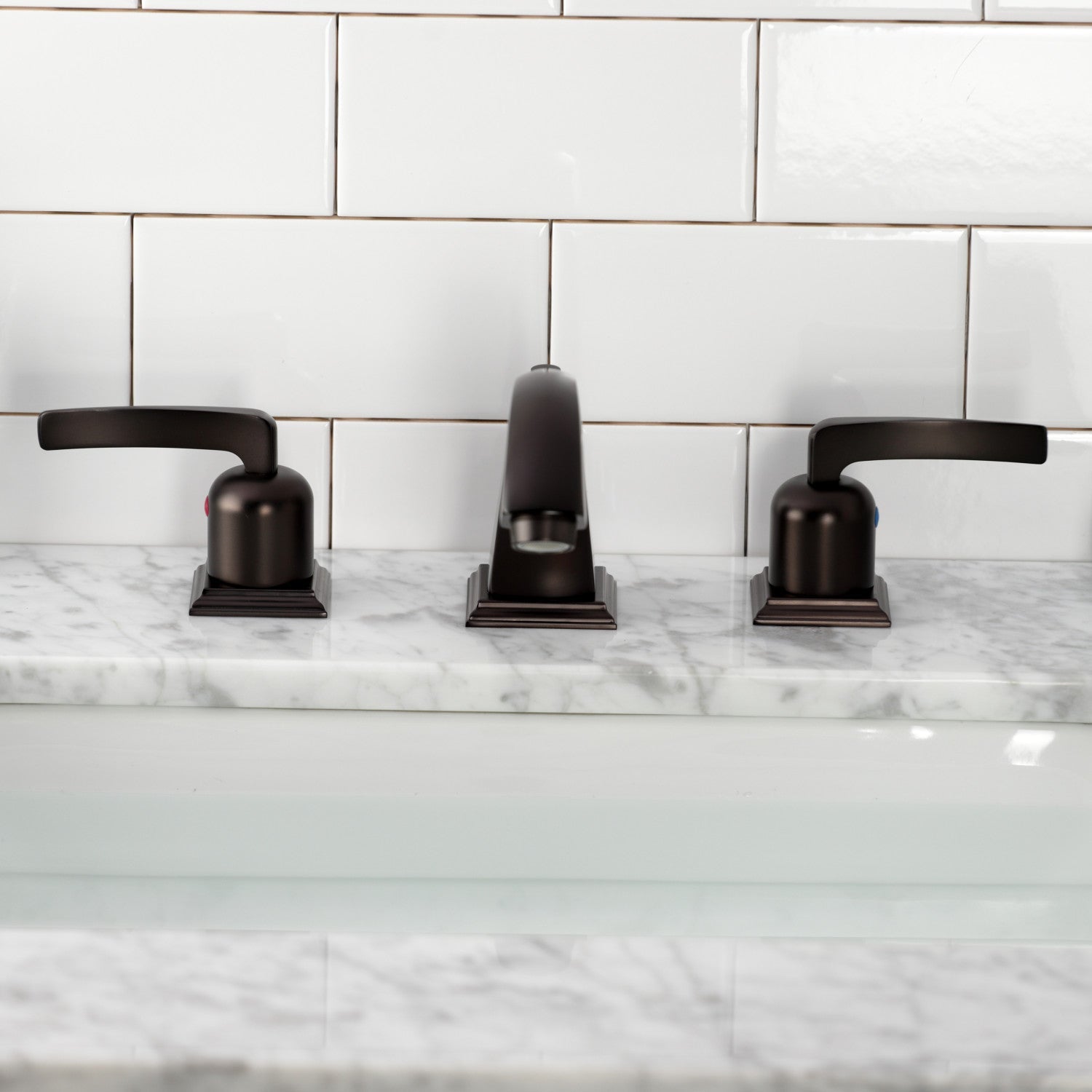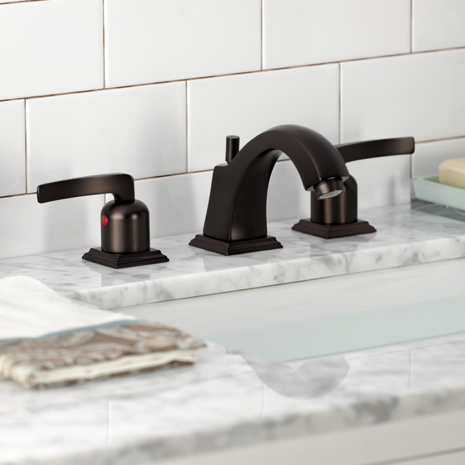 The innovative, sleek design of this faucet will enhance contemporary decor Ideal for more spacious bathrooms, widespread faucets are more spread apart and feature a 3-hole installation. The Centurion 8-inch widespread bathroom faucet and its featured sturdy brass construction and premium oil rubbed bronze finish are guaranteed to glamorize your home's modern ensemble for years to come. Upgrade your contemporary home into a place of elite sophistication with this faucet. A matching finish drain is also included.