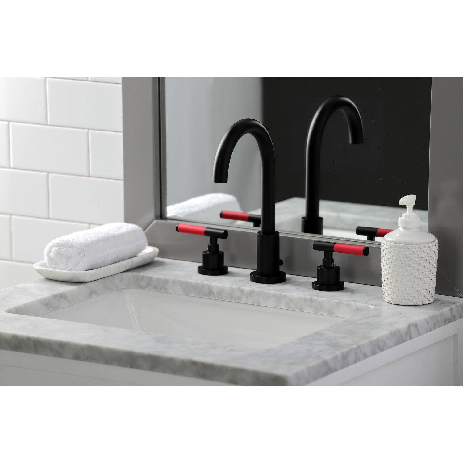 This faucet tastefully interweaves top-notch ergonomic design and the sheen of contemporary simplicity with its black silicone rubber coated handles and cylindrical facets. Ideal for more spacious bathrooms, widespread faucets are more spread apart and feature a 3-hole installation. The Kaiser widespread bathroom faucet with brass pop-up and its featured sturdy brass construction and premium matte black finish are guaranteed to glamorize your home's contemporary ensemble for years to come. Furnish your home surrounding with the modern flair of this fixture. A matching finish drain is also included.