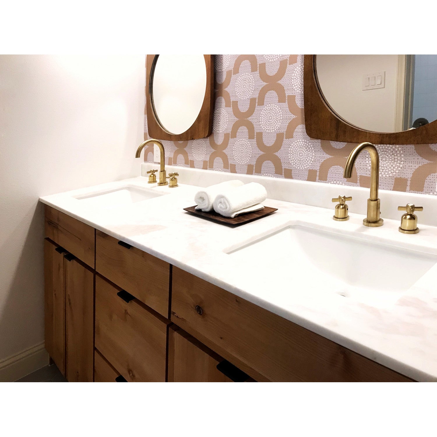 The eclectic style of the 1930s Art Deco style is integrated within this faucet's classical design. Ideal for more spacious bathrooms, widespread faucets are more spread apart and feature a 3-hole installation. The Millennium 8 in. widespread bathroom faucet with brass pop-up and its featured sturdy brass construction and premium brushed brass finish are guaranteed to glamorize your home's modern ensemble for years to come. The elegant design of this faucet will spark praise for your exquisitely-styled bathroom. A matching finish drain is also included.
