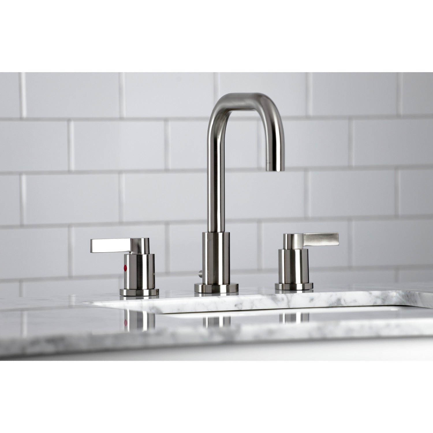 The chic fashion of this faucet is distinguished by its expressive artistry and flat, ergonomic levers. Ideal for more spacious bathrooms, widespread faucets are more spread apart and feature a 3-hole installation. The NuvoFusion widespread bathroom faucet with brass pop-up and its featured sturdy brass construction and premium brushed nickel finish are guaranteed to glamorize your home's modern ensemble for years to come. Revive the obsolete with the illustrious prestige of this fixture. A matching finish drain is also included.