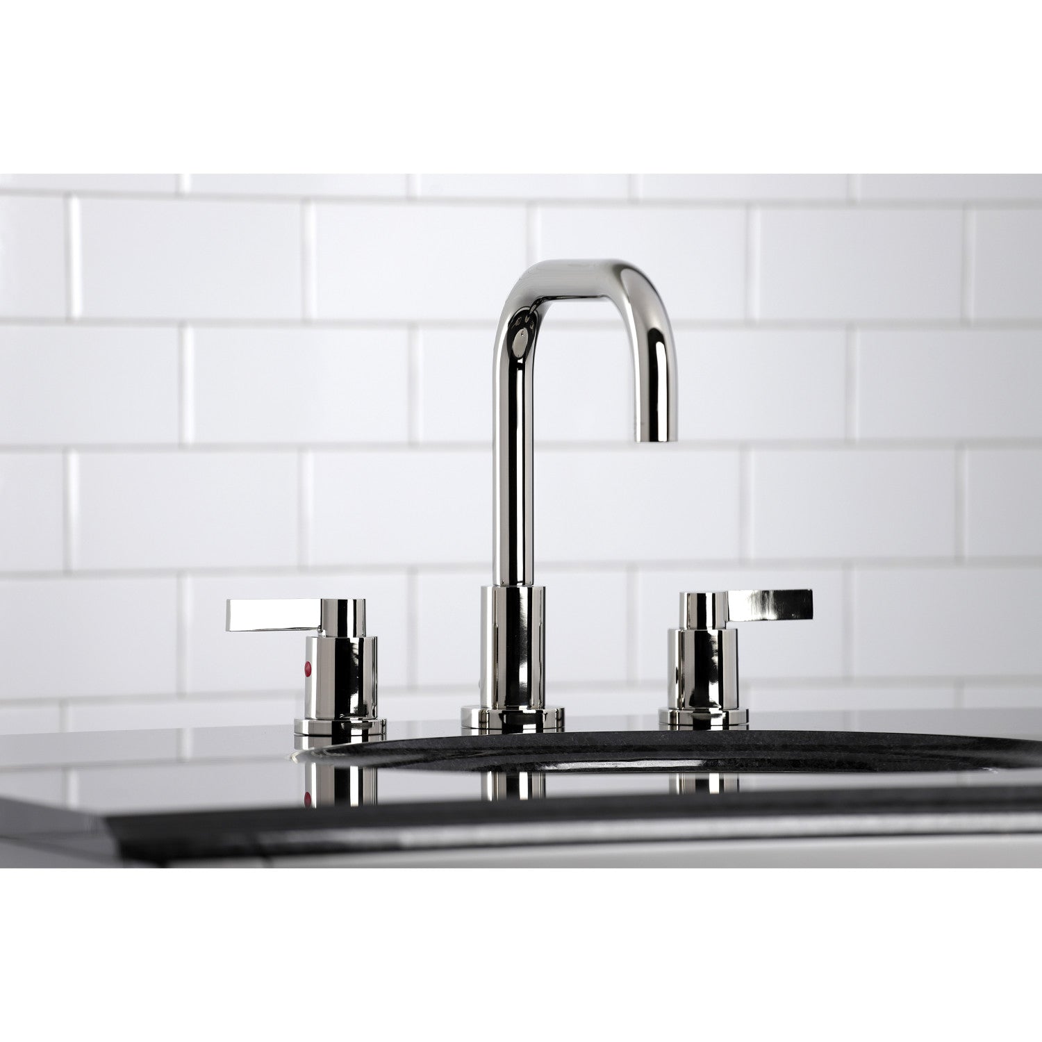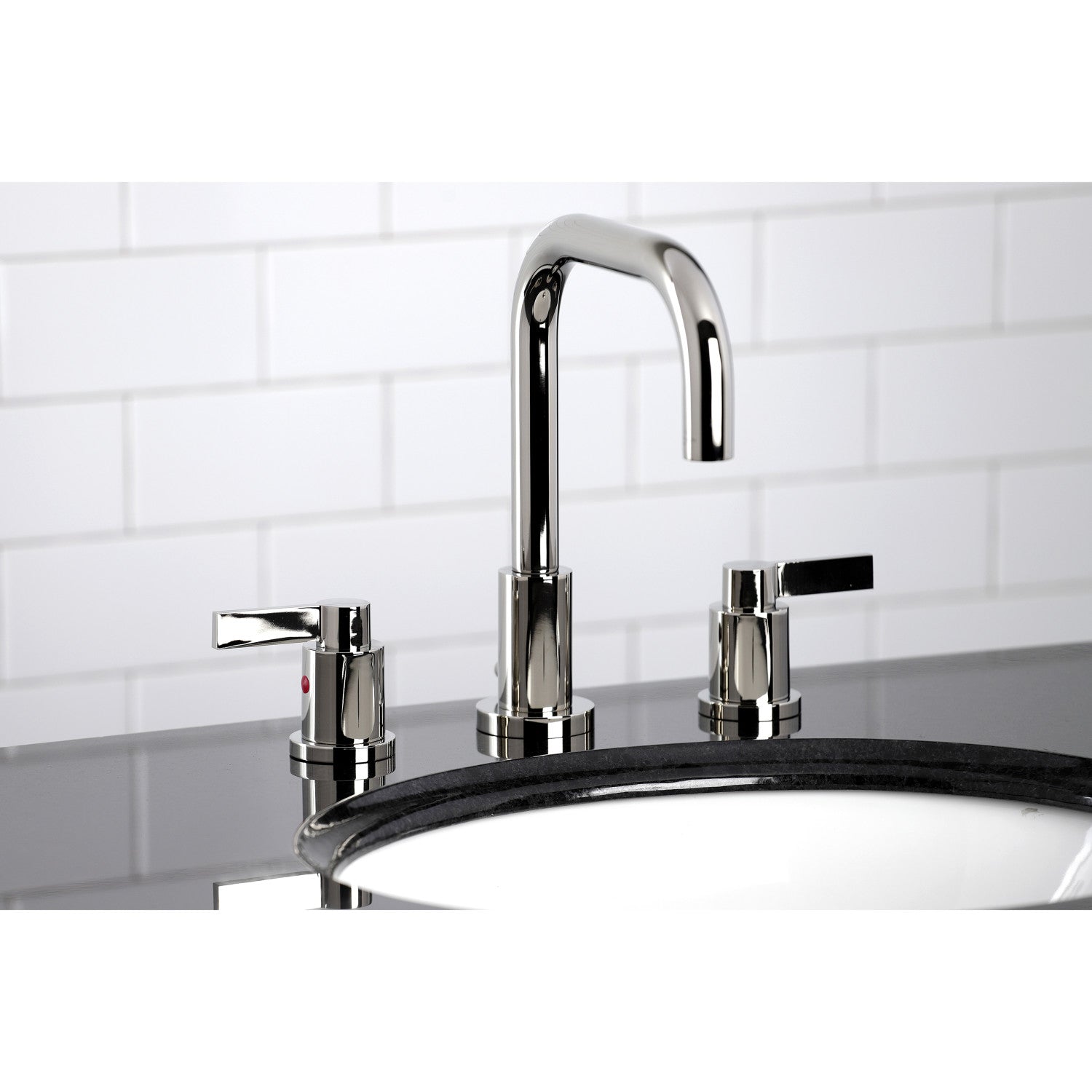 The chic fashion of this faucet is distinguished by its expressive artistry and flat, ergonomic levers. Ideal for more spacious bathrooms, widespread faucets are more spread apart and feature a 3-hole installation. The NuvoFusion widespread bathroom faucet with brass pop-up and its featured sturdy brass construction and premium polished nickel finish are guaranteed to glamorize your home's modern ensemble for years to come. Revive the obsolete with the illustrious prestige of this fixture. A matching finish drain is also included.