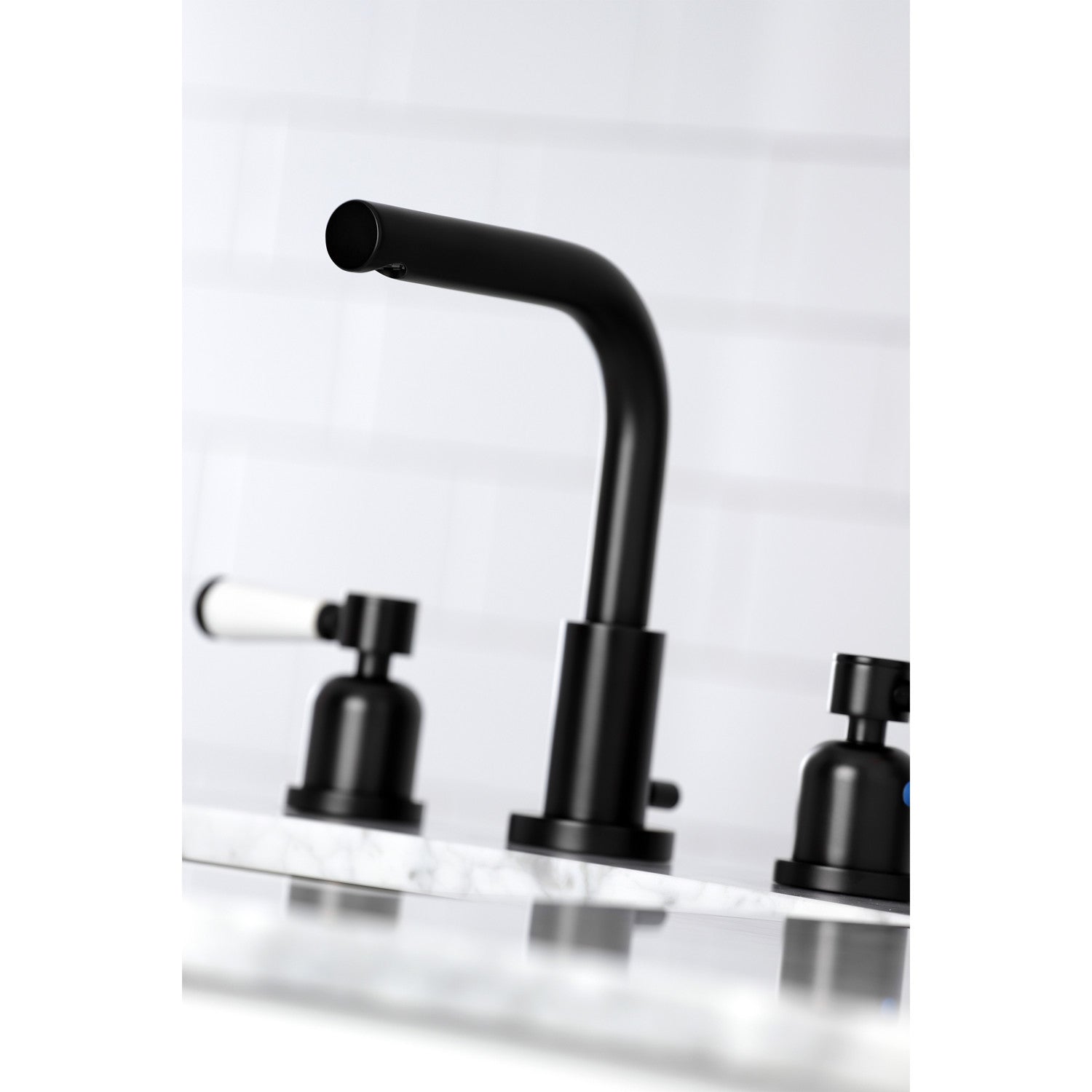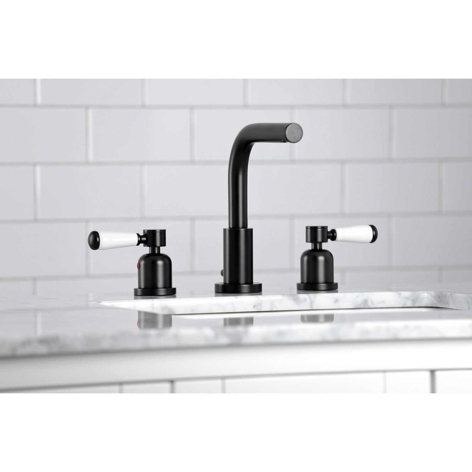 Crafted to bring aesthetic beauty alongside exceptional performance, the feature of porcelain lever handles and rounded architecture solidifies pristine refinement in this faucet. Ideal for more spacious bathrooms, widespread faucets are more spread apart and feature a 3-hole installation. The Paris 8-inch widespread bathroom faucet with brass pop-up and its featured sturdy brass construction and premium matte black finish are guaranteed to glamorize your home's modern ensemble for years to come. Embolden your home ensemble with the addition of this exquisite fixture. A matching finish drain is also included.