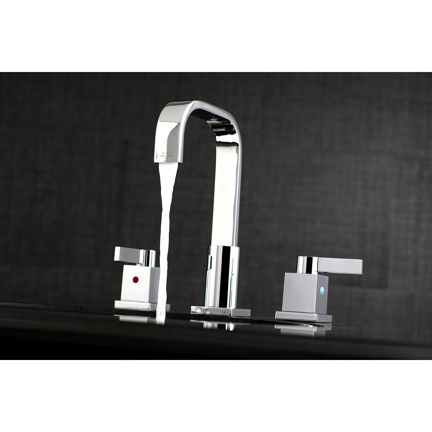 This faucet's modern features create a bold and edgy design in your bathroom. Ideal for more spacious bathrooms, widespread faucets are more spread apart and feature a 3-hole installation. The Meridian 8-inch widespread bathroom faucet and its featured sturdy brass construction and premium polished chrome finish are guaranteed to glamorize your home's modern ensemble for years to come. A matching finish drain is also included.