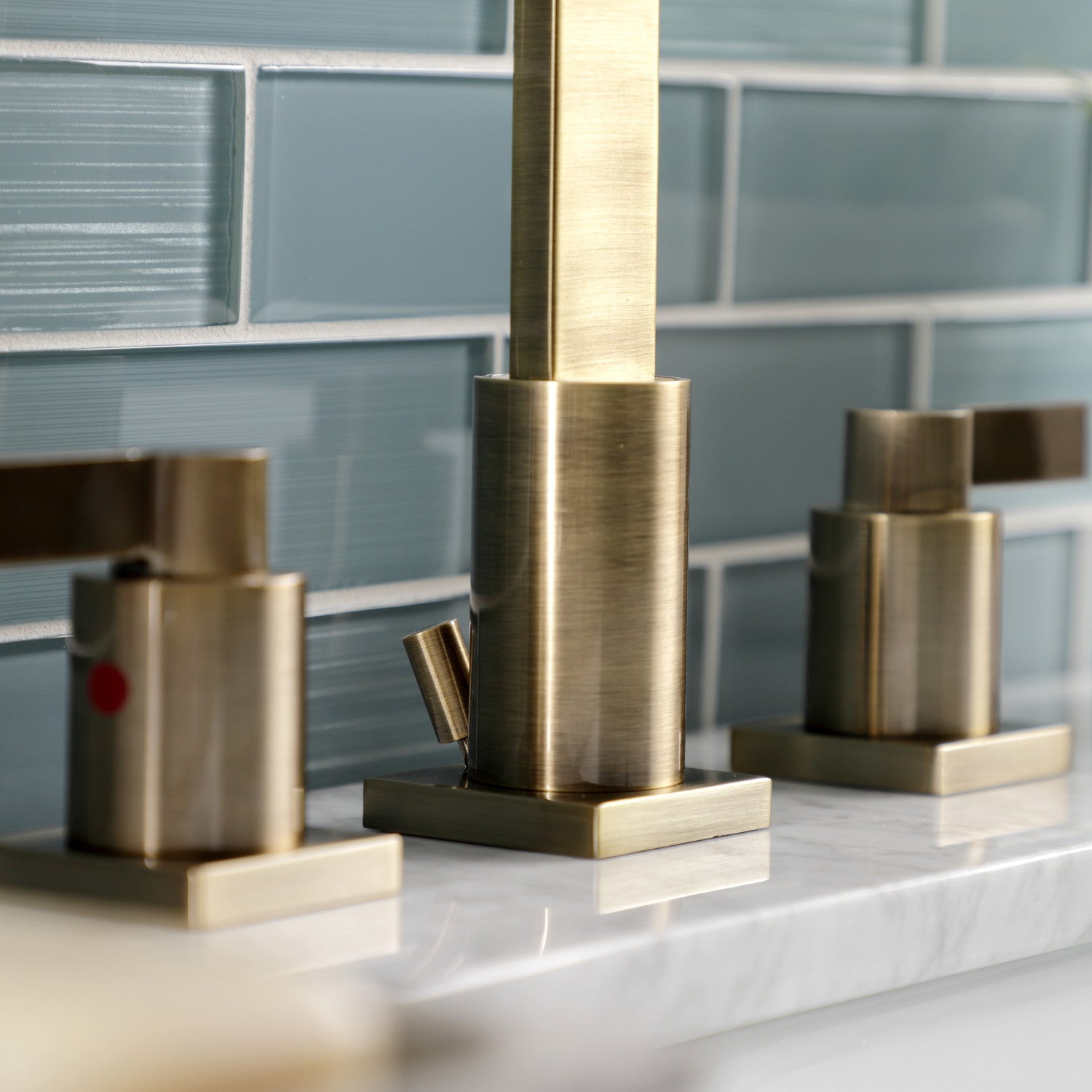 The chic fashion of this faucet is distinguished by its expressive artistry and flat, ergonomic levers. Ideal for more spacious bathrooms, widespread faucets are more spread apart and feature a 3-hole installation. The NuvoFusion 8 in. widespread bathroom faucet with pop-up drain and its featured sturdy brass construction and premium antique brass finish are guaranteed to glamorize your home's modern ensemble for years to come. Revive the obsolete with the illustrious prestige of this fixture. A matching finish drain is also included.