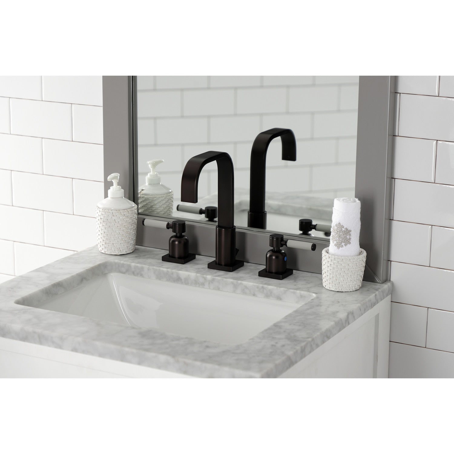 This faucet tastefully interweaves top-notch ergonomic design and the sheen of contemporary simplicity with its black silicone rubber coated handles and cylindrical facets. Ideal for more spacious bathrooms, widespread faucets are more spread apart and feature a 3-hole installation. The Kaiser 8-inch widespread bathroom faucet and its featured sturdy brass construction and premium oil rubbed bronze finish are guaranteed to glamorize your home's modern ensemble for years to come. Furnish your home surrounding with the modern flair of this fixture. A matching finish drain is also included.