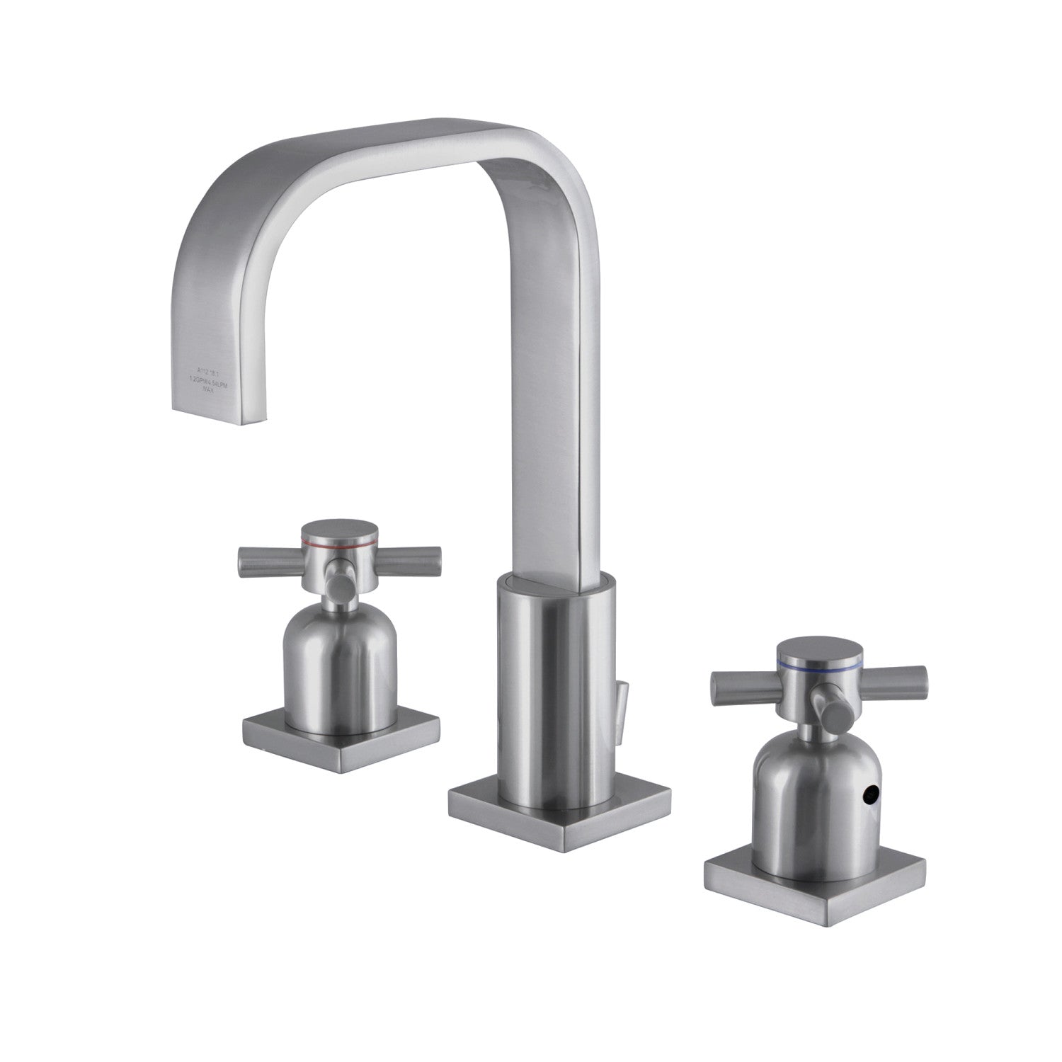 This faucet boasts bold, sleek design with its cylindrical styling. Ideal for more spacious bathrooms, widespread faucets are more spread apart and feature a 3-hole installation. The Concord 8-inch widespread bathroom faucet and its featured sturdy brass construction and premium brushed nickel finish are guaranteed to glamorize your home's modern ensemble for years to come. Flash the radical brilliance of contemporary trends with this statement piece. A matching finish drain is also included.