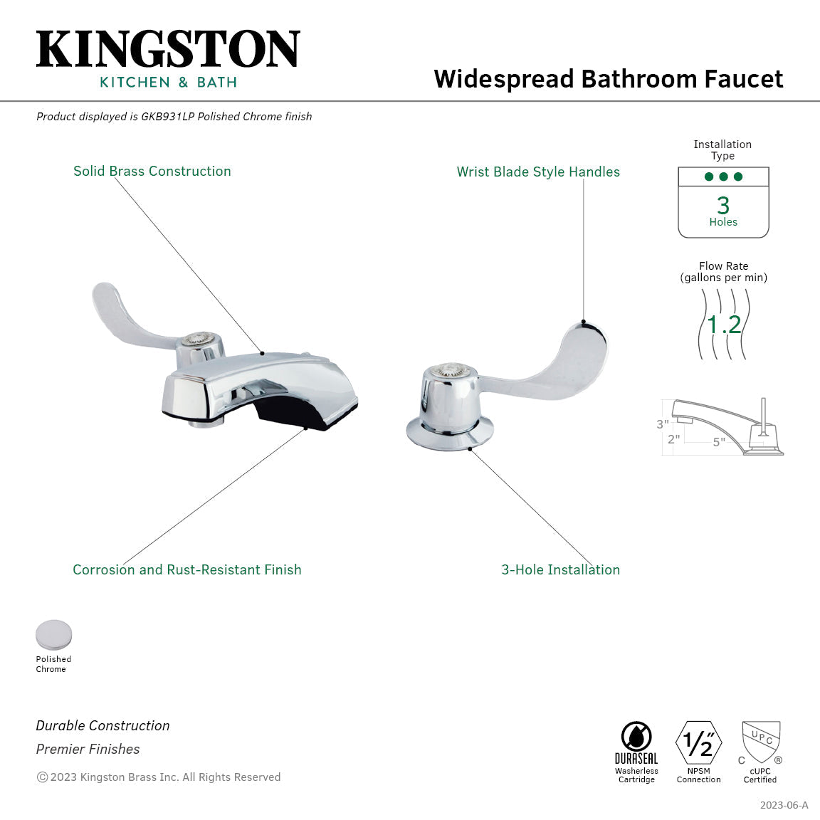 Vista GKB931LP Two-Handle 3-Hole Deck Mount Widespread Bathroom Faucet, Polished Chrome