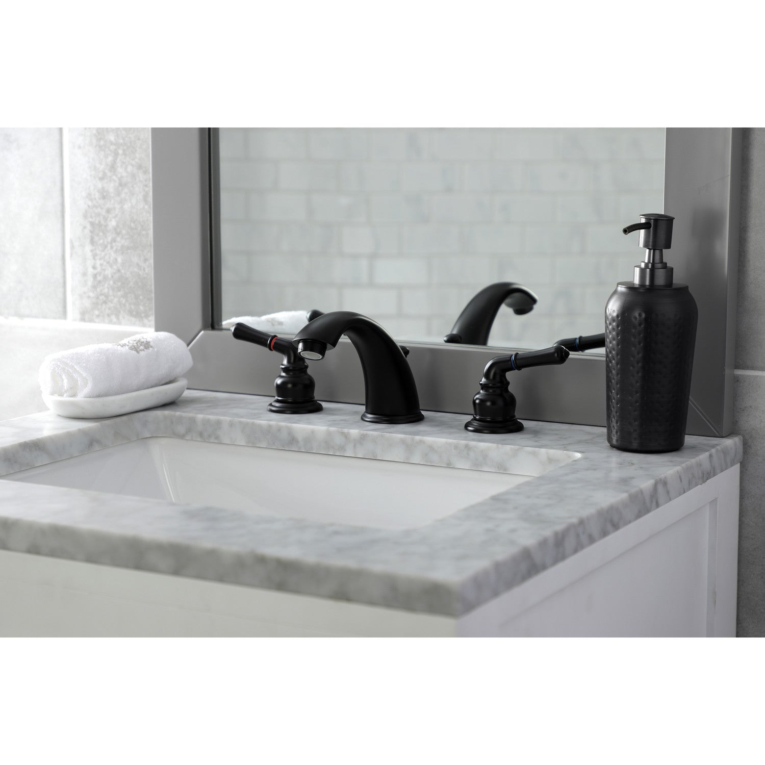 Admired for its perfect combination of unparalleled traditionalism with a flavor of unique characteristics, this faucet offers timeless appeal and eye-catching design. Ideal for more spacious bathrooms, widespread faucets are more spread apart and feature a 3-hole installation. The Magellan 8-inch widespread bathroom faucet and its featured sturdy brass construction and premium matte black finish are guaranteed to glamorize your home's traditional ensemble for years to come. Embrace the touch of extraordinariness offered by this fixture and make it an addition to your home. A matching finish drain is also included.