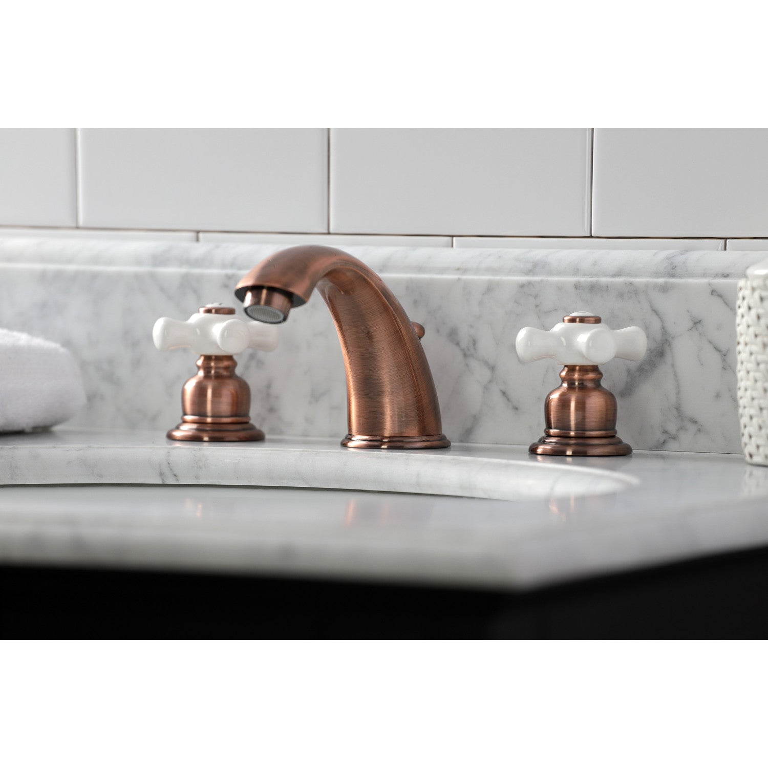 Returning to the nooks and curios of design from the Victorian Era, this faucet breathes modern excellence in performance while radiating vintage opulence. Ideal for more spacious bathrooms, widespread faucets are more spread apart and feature a 3-hole installation. The Victorian 8 in. widespread bathroom faucet with pop-up drain and its featured sturdy brass construction and premium antique copper finish are guaranteed to glamorize your home's traditional ensemble for years to come. Cultivate the vintage European aura and its lasting durability within your own home with this stunning fixture. A matching finish drain is also included.