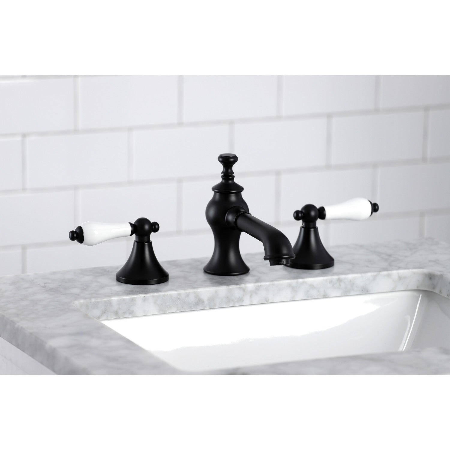 Vintage KC7060PL Two-Handle 3-Hole Deck Mount Widespread Bathroom Faucet with Brass Pop-Up, Matte Black