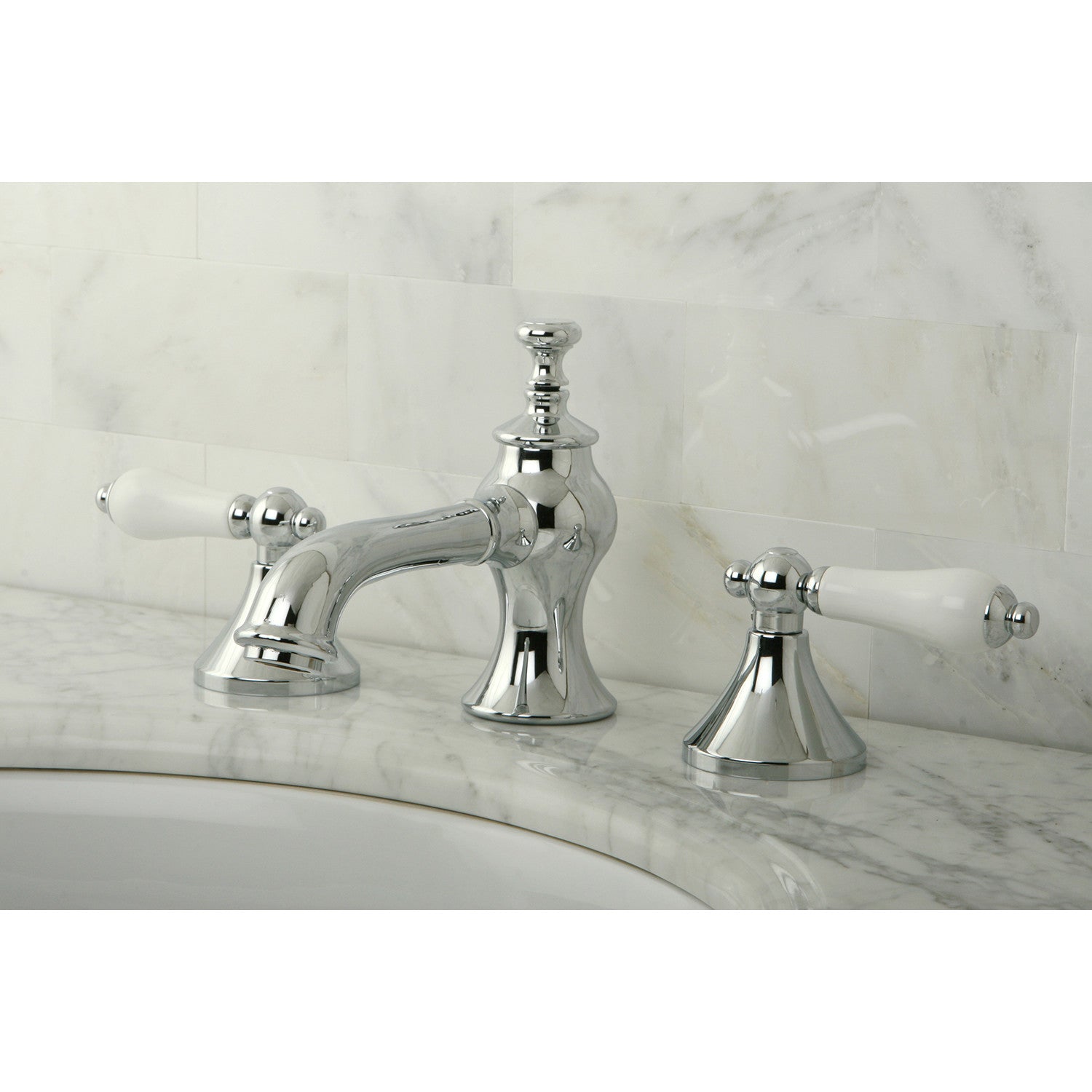 Vintage KC7061PL Two-Handle 3-Hole Deck Mount Widespread Bathroom Faucet with Brass Pop-Up, Polished Chrome