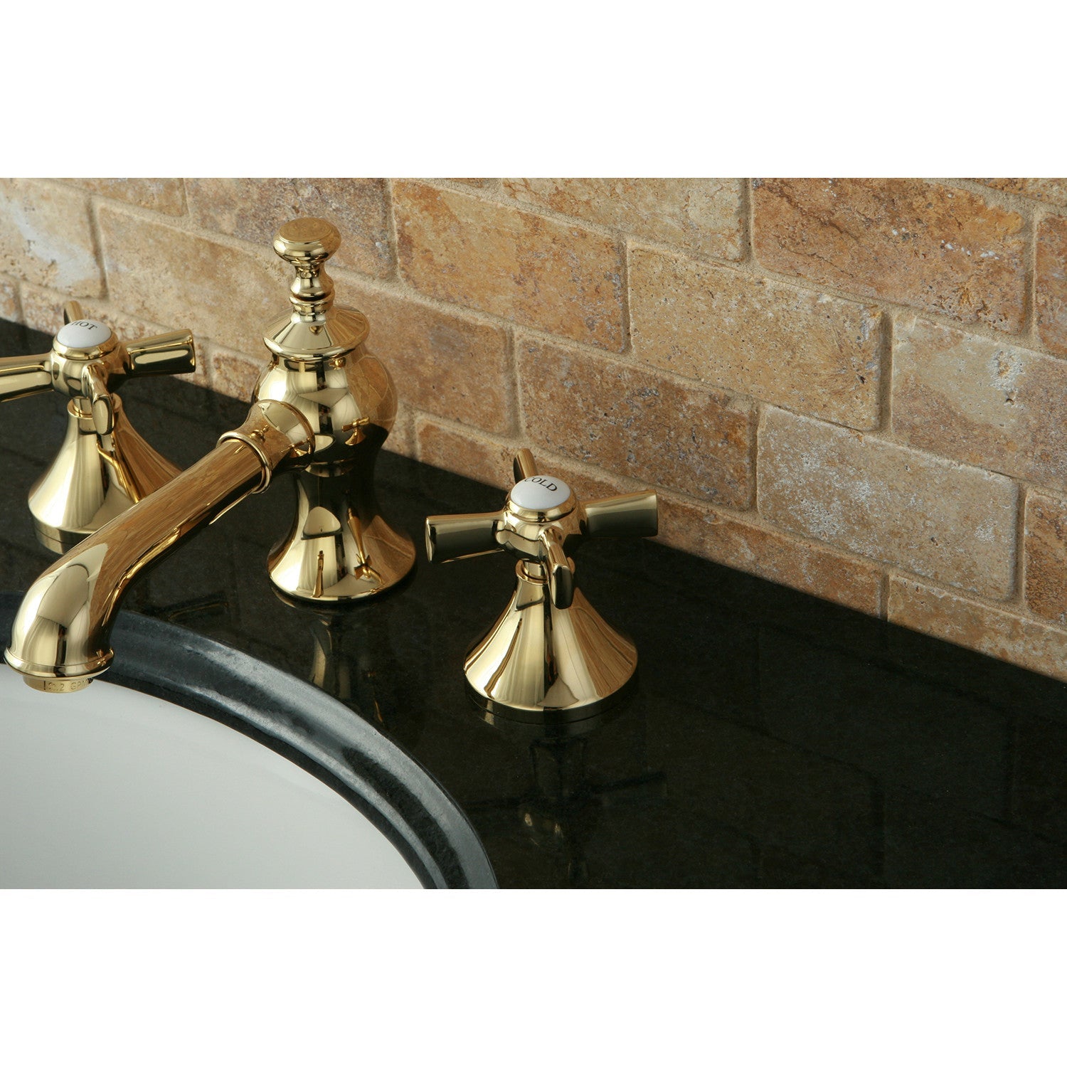 Millennium KC7062ZX Two-Handle 3-Hole Deck Mount Widespread Bathroom Faucet with Brass Pop-Up, Polished Brass