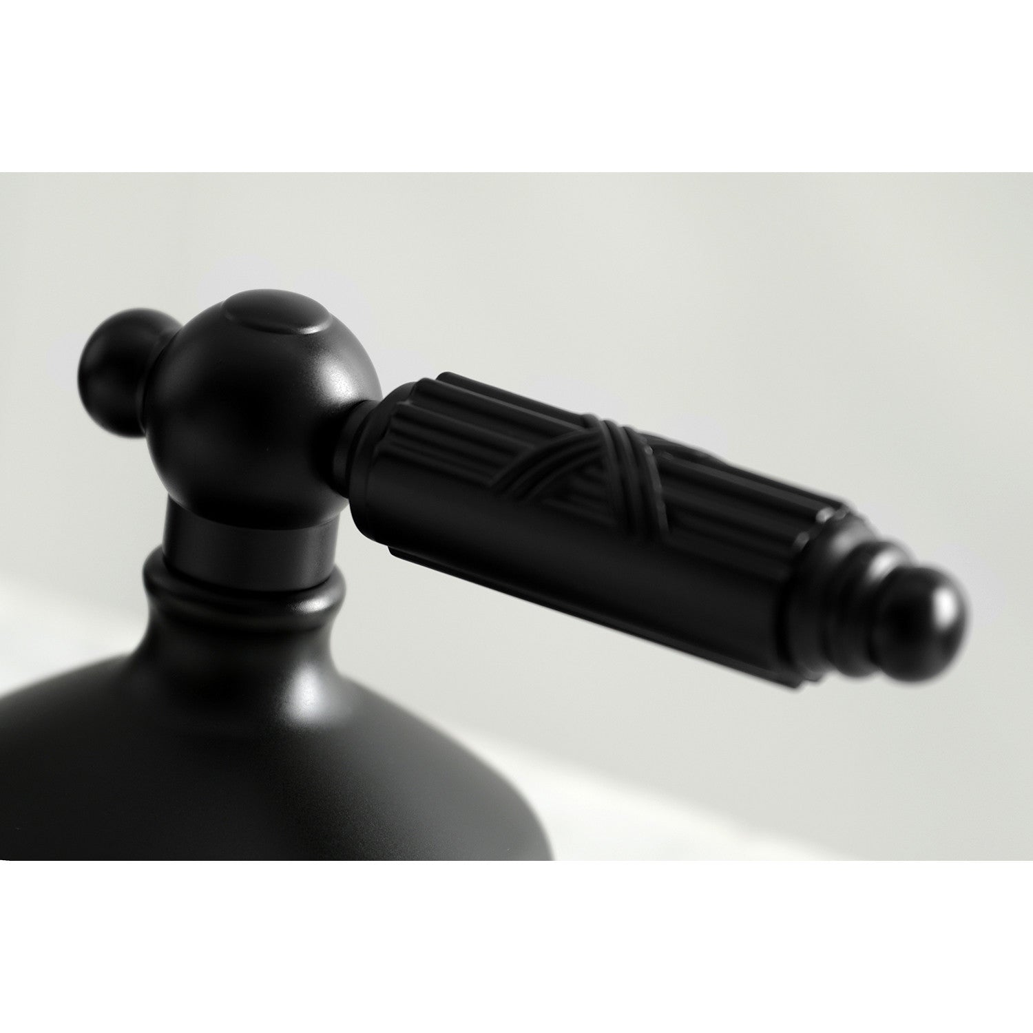 The whimsical design of this faucet is intended to catch eyes. Ideal for more spacious bathrooms, widespread faucets are more spread apart and feature a 3-hole installation. The Georgian 8-inch widespread bathroom faucet with brass pop-up and its featured sturdy brass construction and premium matte black finish are guaranteed to glamorize your home's traditional ensemble for years to come. Complete your personal European sanctuary with the help of this elegant piece. A matching finish drain is also included.