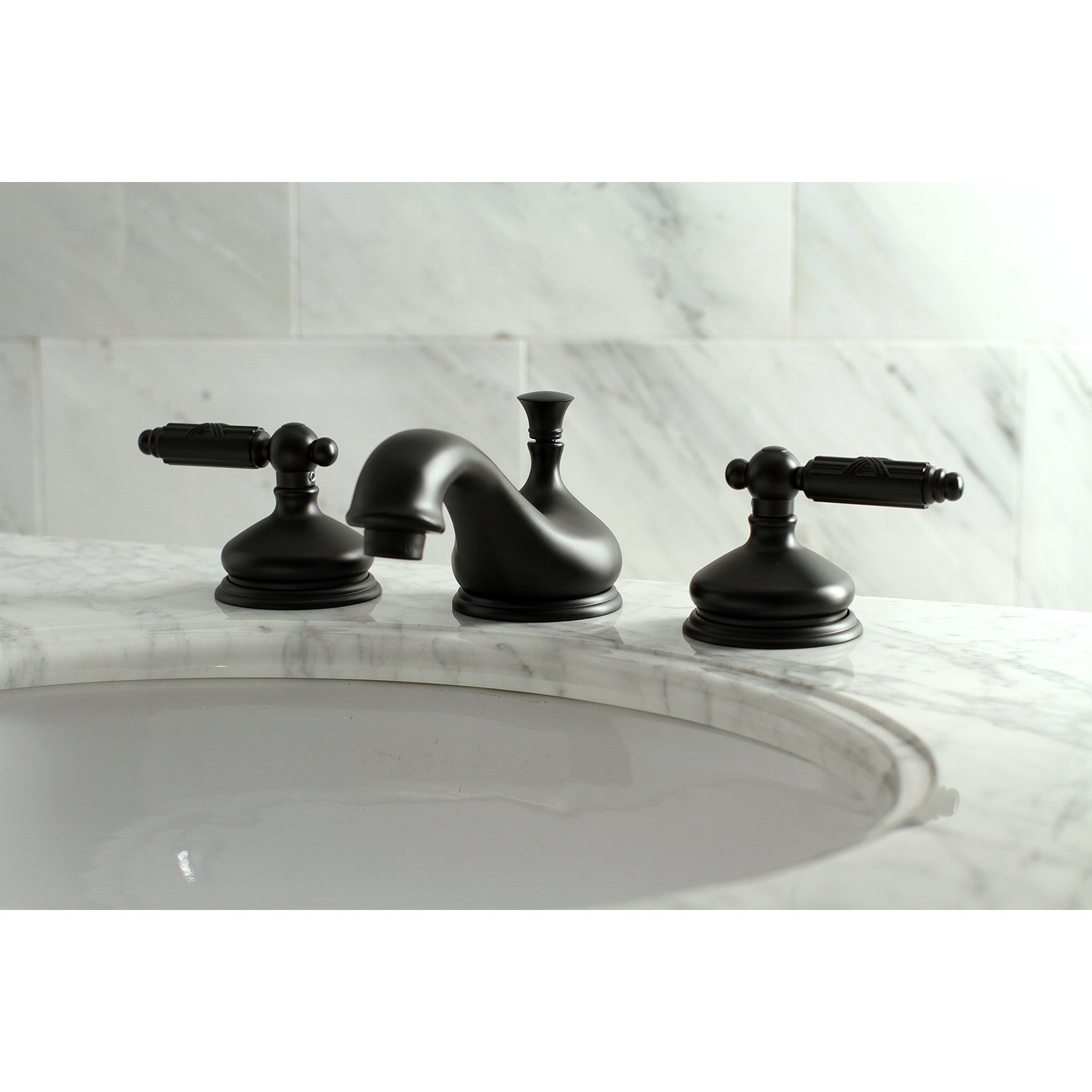 Georgian KS1160GL Two-Handle 3-Hole Deck Mount Widespread Bathroom Faucet with Brass Pop-Up, Matte Black