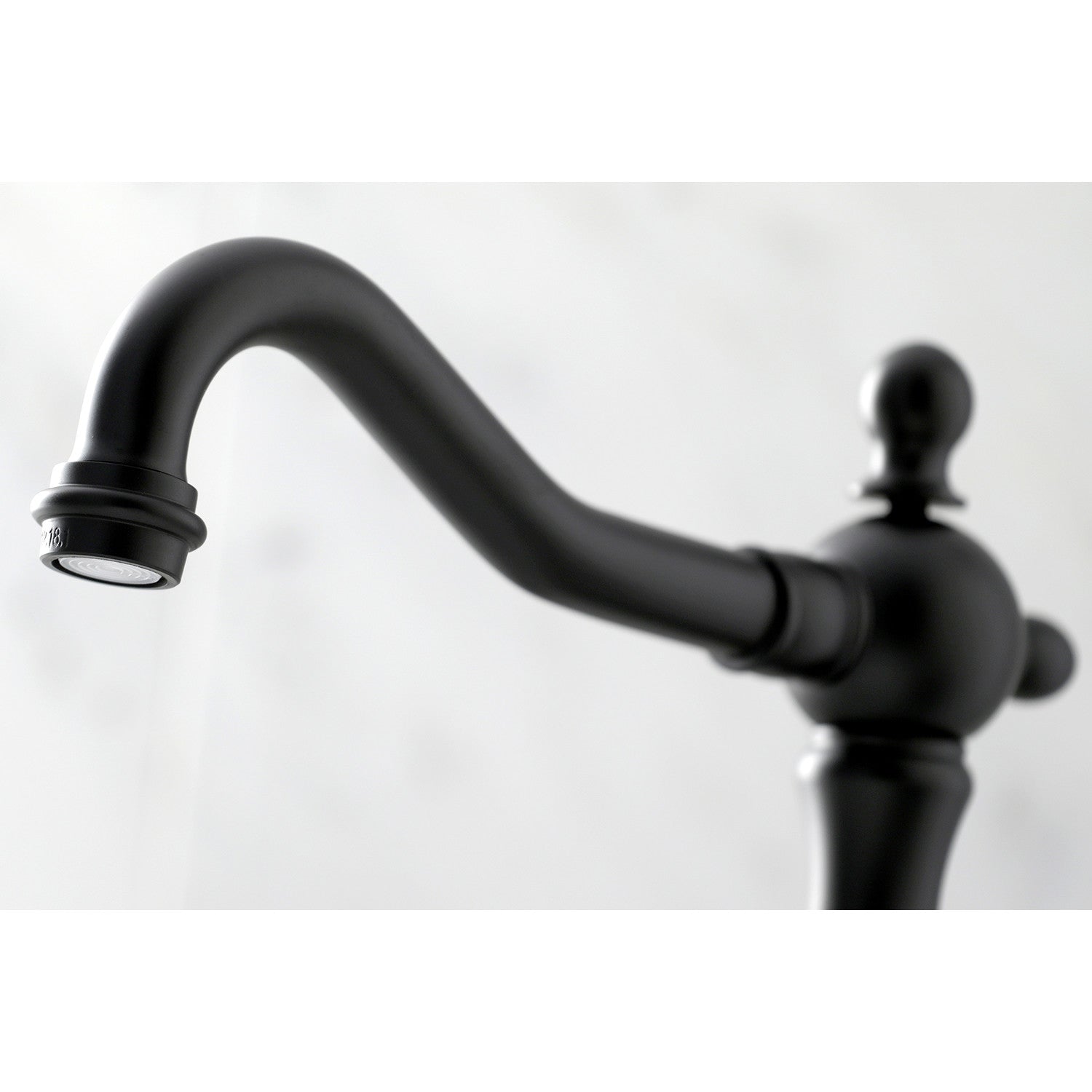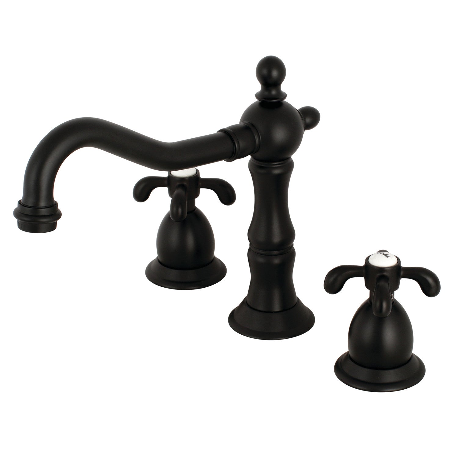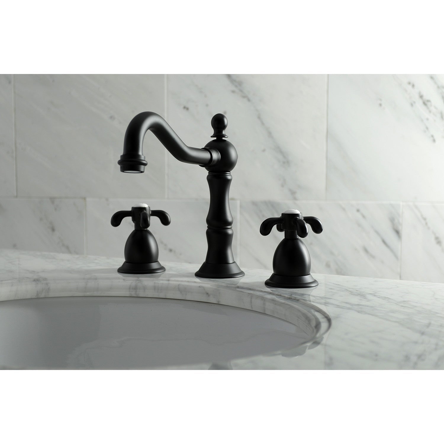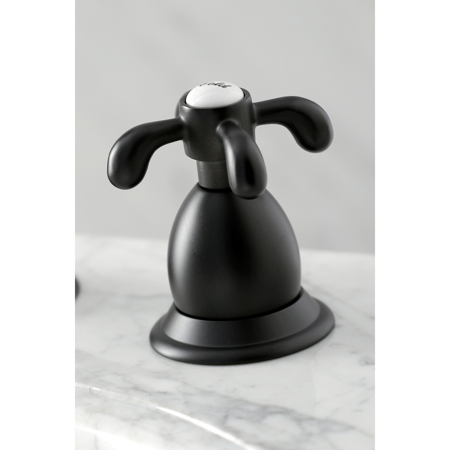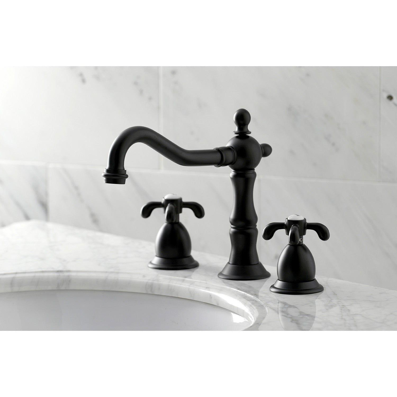 French Country KS1970TX Two-Handle 3-Hole Deck Mount Widespread Bathroom Faucet with Brass Pop-Up, Matte Black