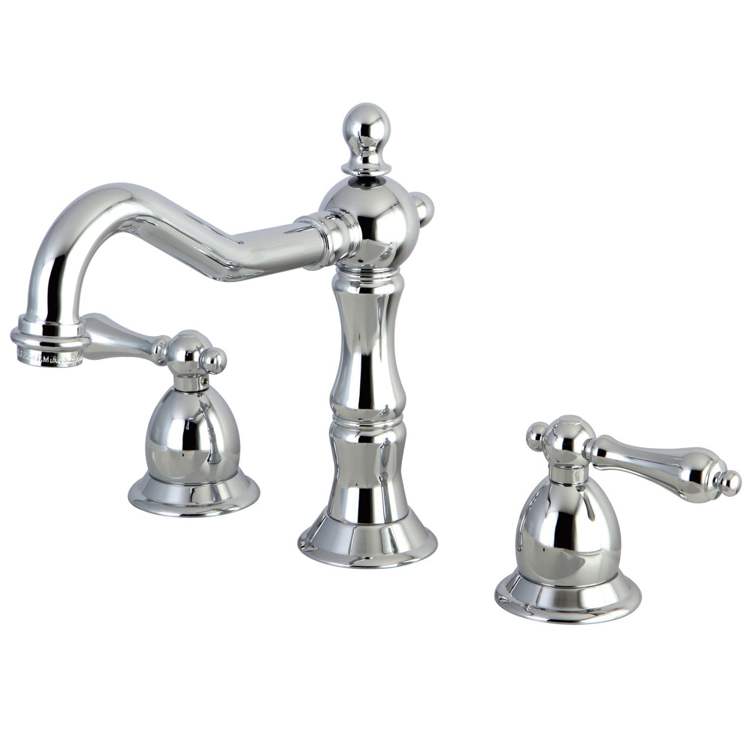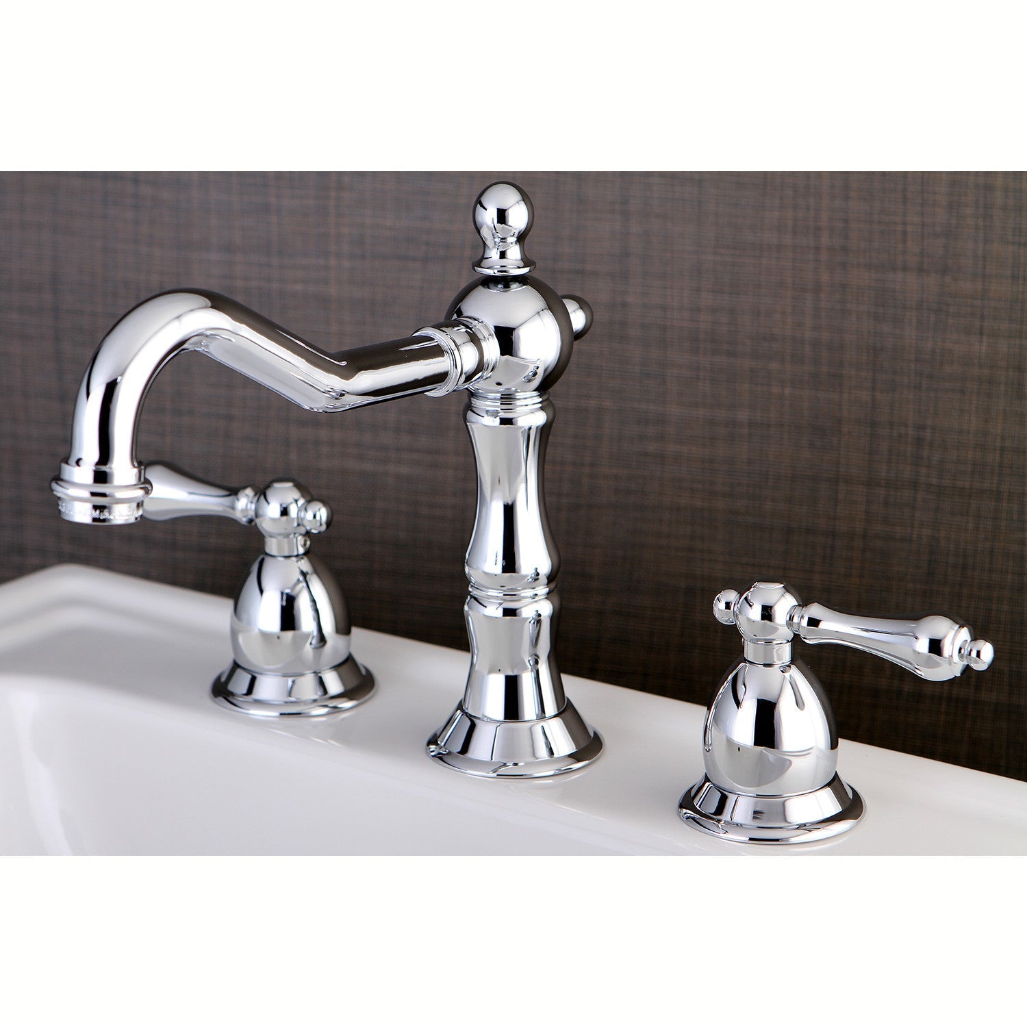 Heritage KS1971AL Two-Handle 3-Hole Deck Mount Widespread Bathroom Faucet with Brass Pop-Up, Polished Chrome