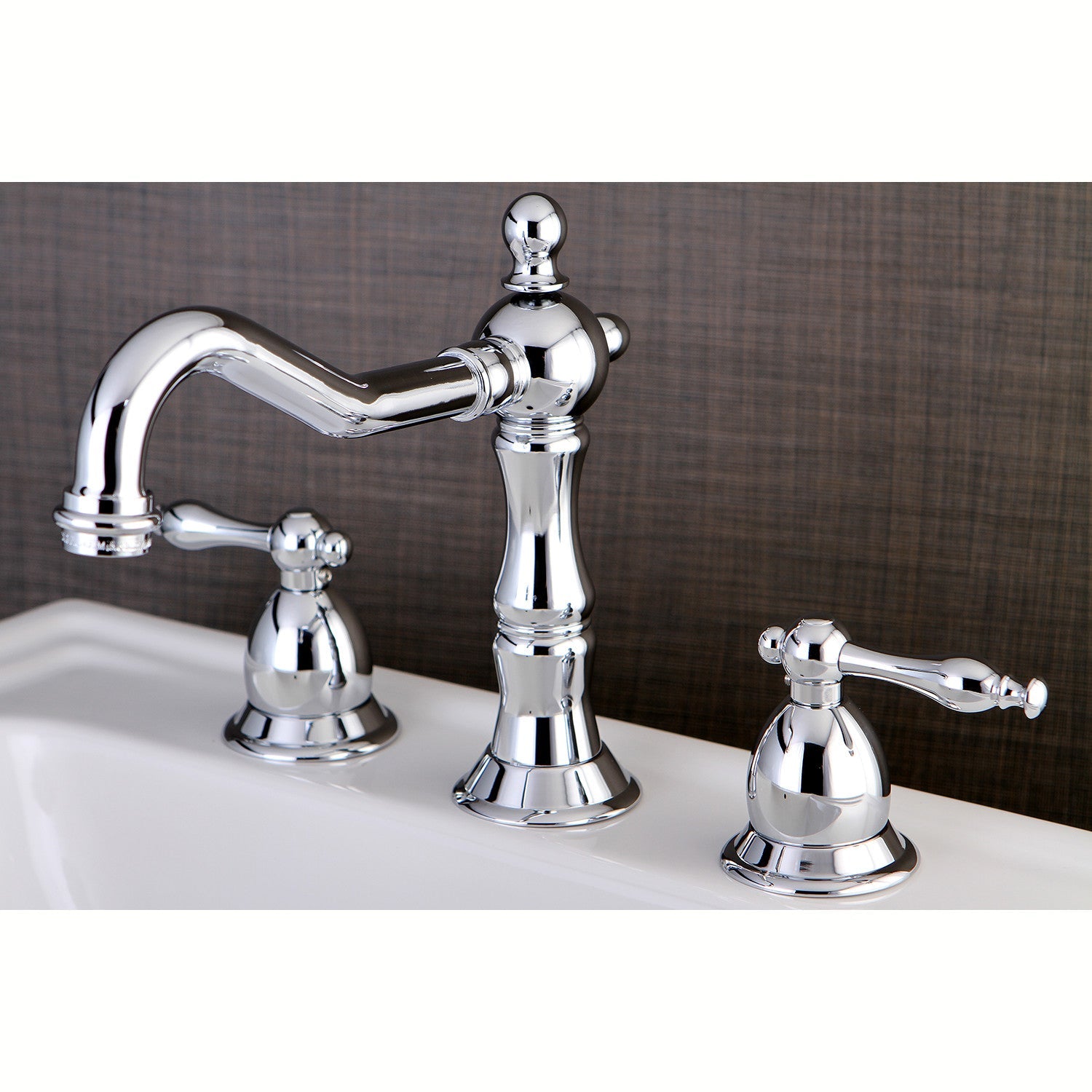 Heritage KS1971NL Two-Handle 3-Hole Deck Mount Widespread Bathroom Faucet with Brass Pop-Up, Polished Chrome