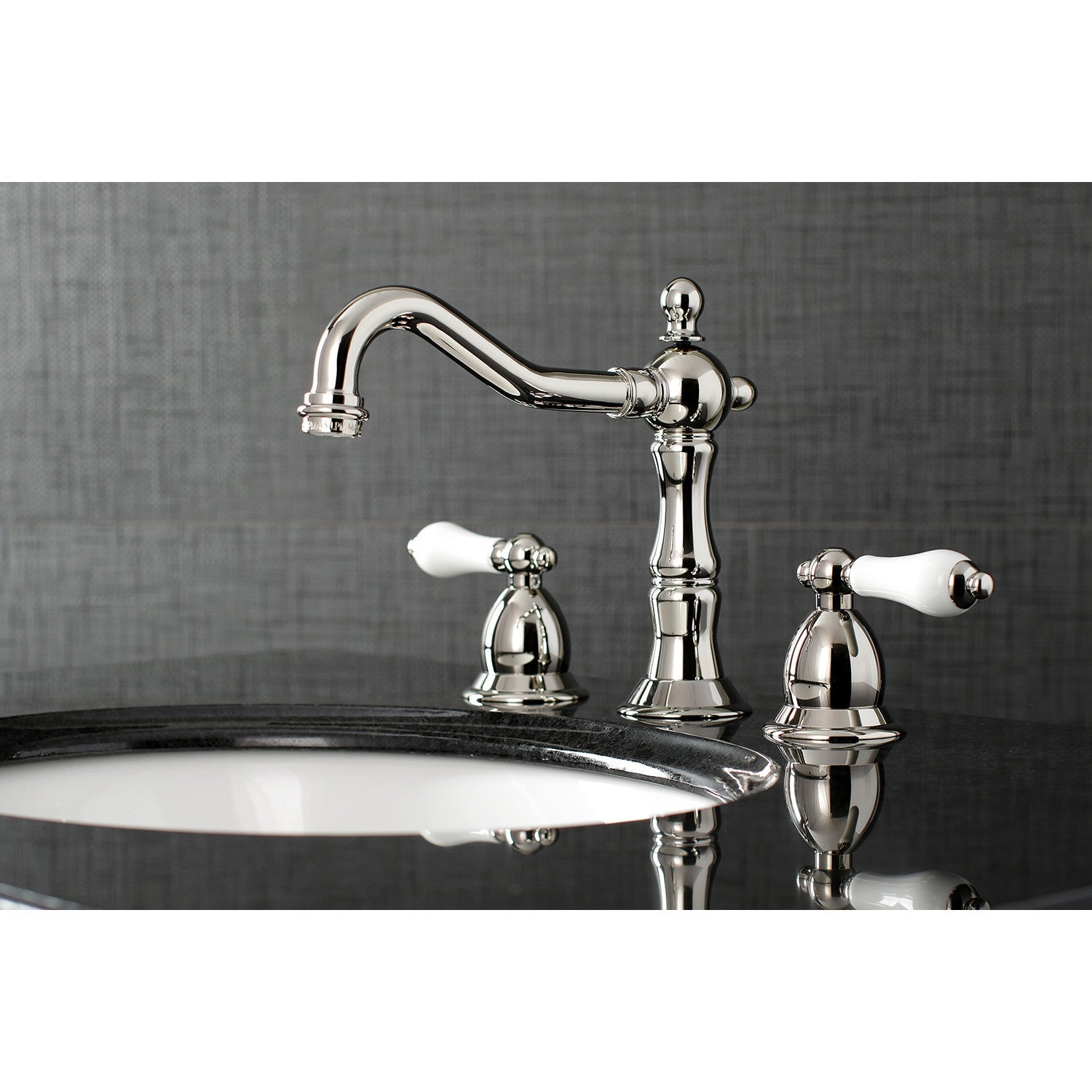 Heritage KS1976PL Two-Handle 3-Hole Deck Mount Widespread Bathroom Faucet with Brass Pop-Up, Polished Nickel