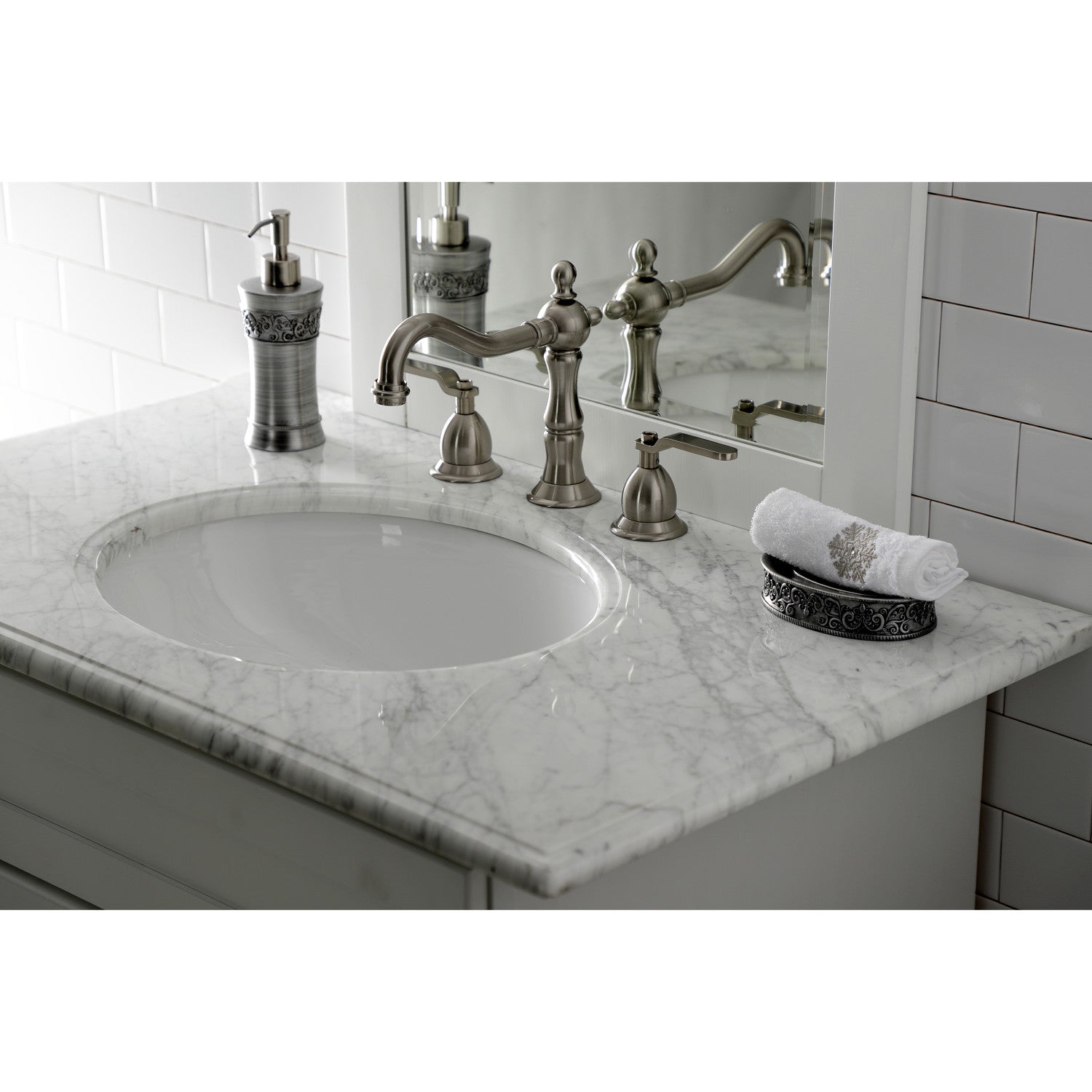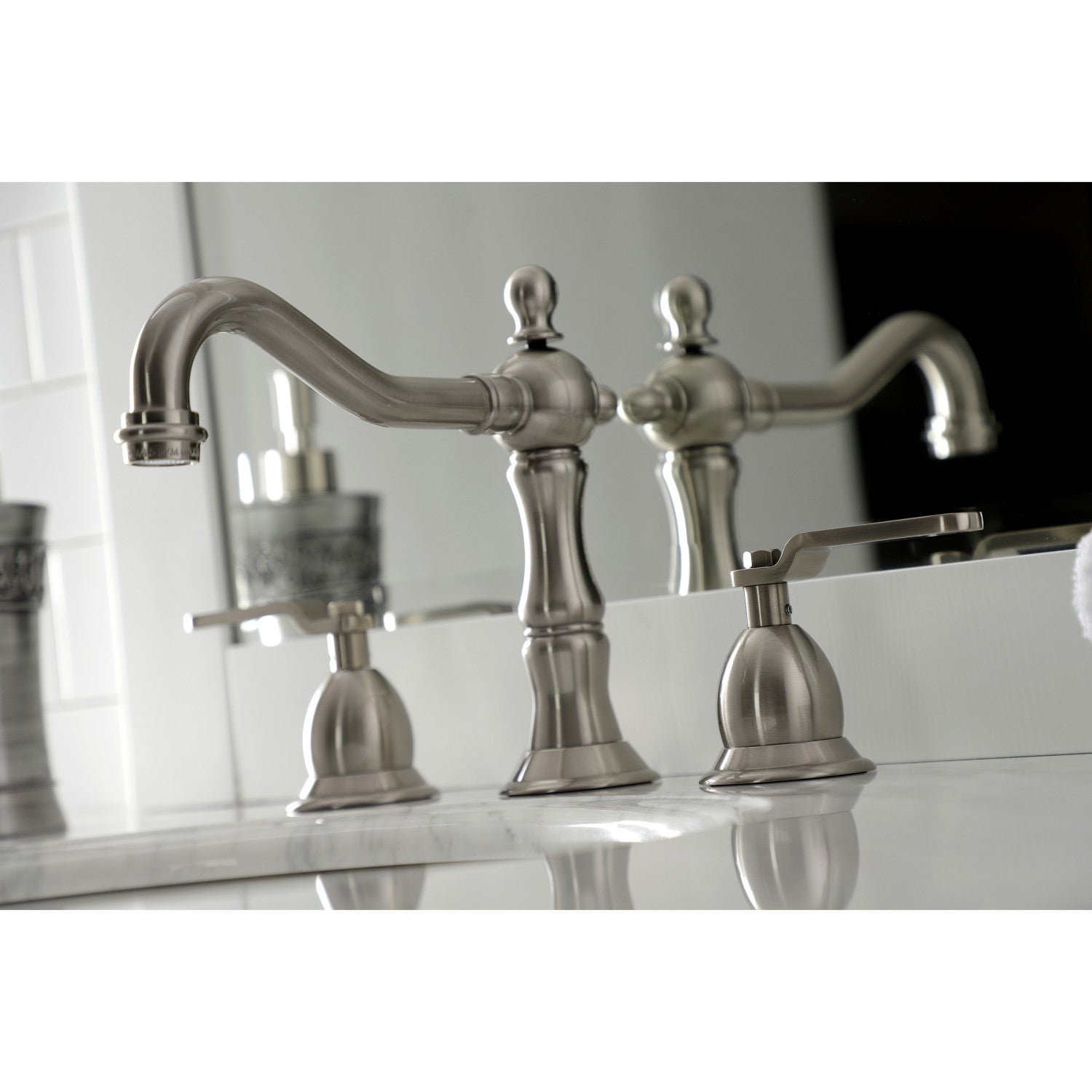 Whitaker KS1978KL Two-Handle 3-Hole Deck Mount Widespread Bathroom Faucet with Brass Pop-Up, Brushed Nickel