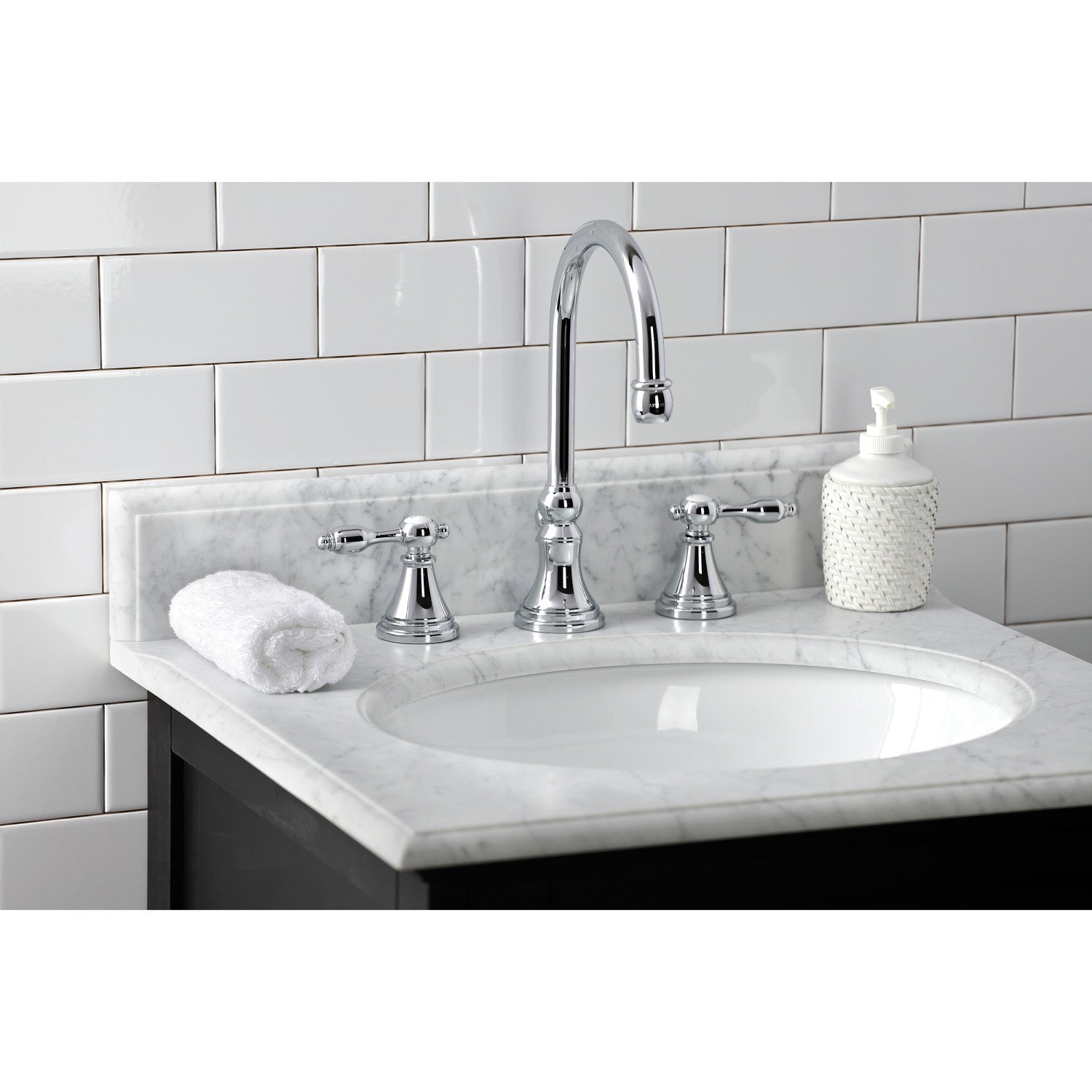 Offering a nod toward the past, this faucet is beautifully inspired by the vintage elegance of mid-19th Century design. Ideal for more spacious bathrooms, widespread faucets are more spread apart and feature a 3-hole installation. The Tudor widespread bathroom faucet with brass pop-up and its featured sturdy brass construction and premium polished chrome finish are guaranteed to glamorize your home's traditional ensemble for years to come. A unique and classically enchanting personality is embodied in this centerpiece. A matching finish drain is also included.