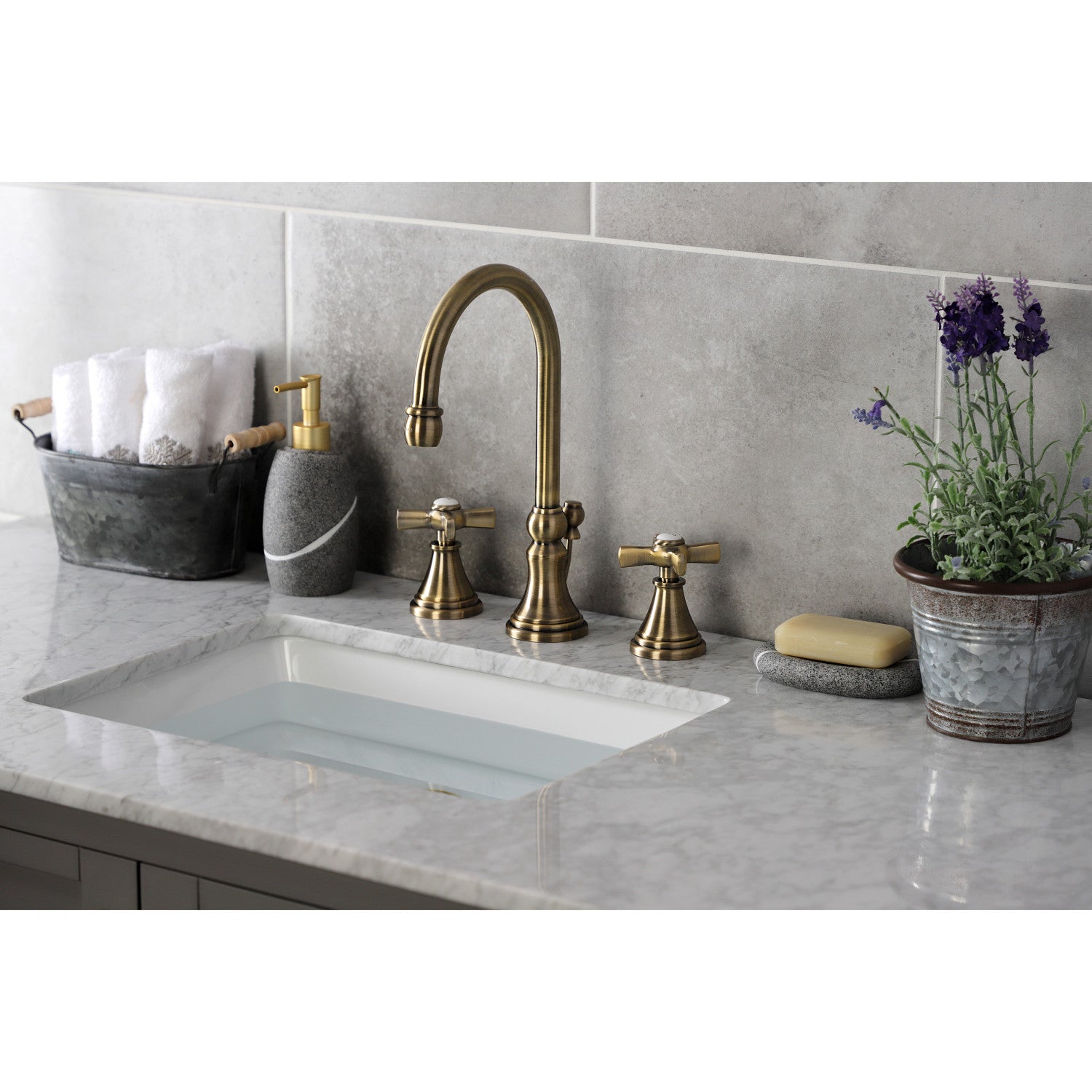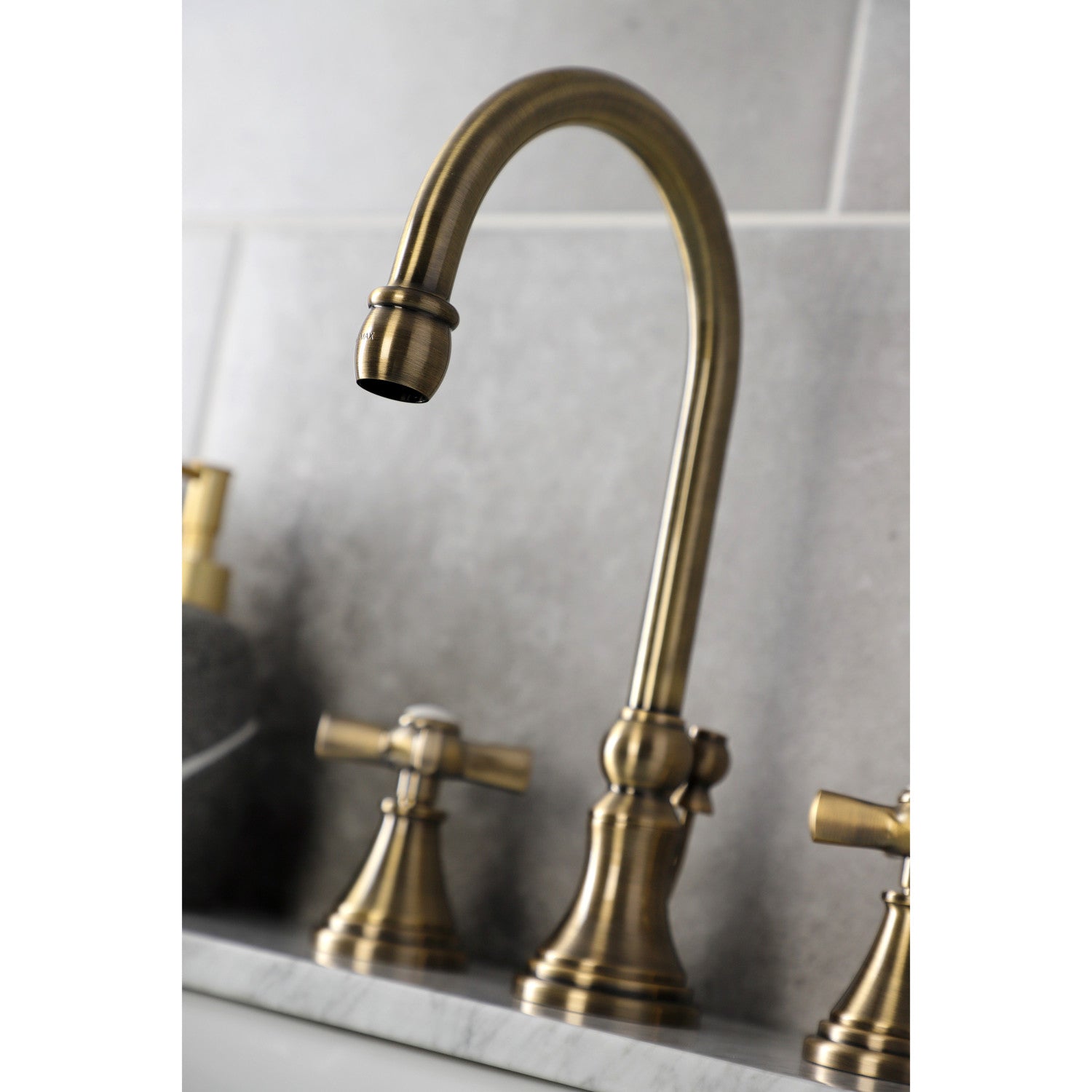 Millennium KS2983ZX Two-Handle 3-Hole Deck Mount Widespread Bathroom Faucet with Brass Pop-Up, Antique Brass