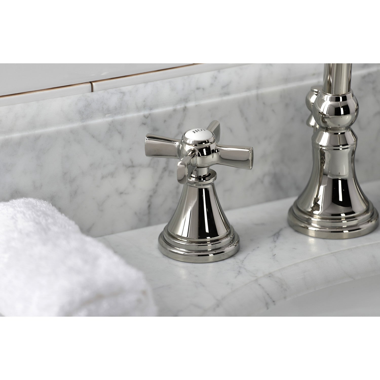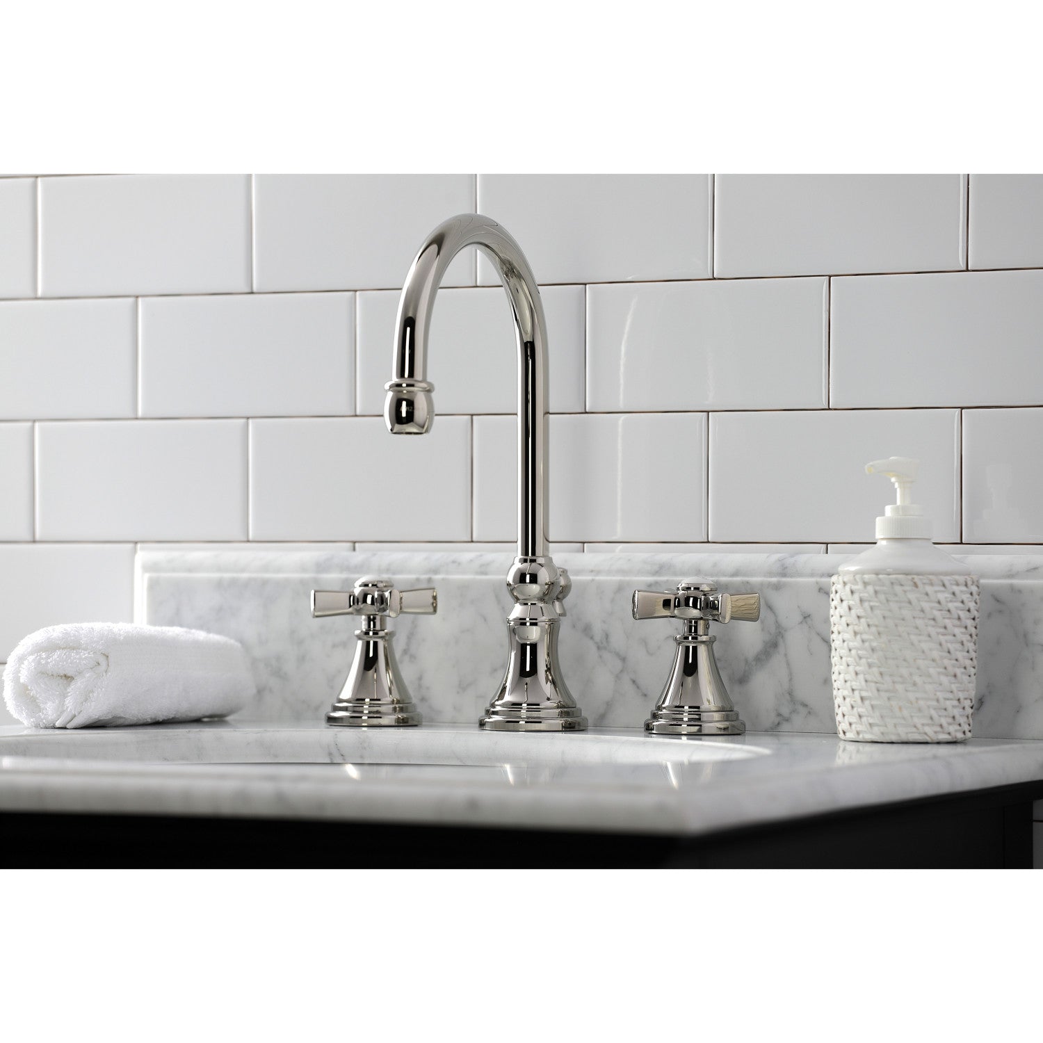 Millennium KS2986ZX Two-Handle 3-Hole Deck Mount Widespread Bathroom Faucet with Brass Pop-Up, Polished Nickel