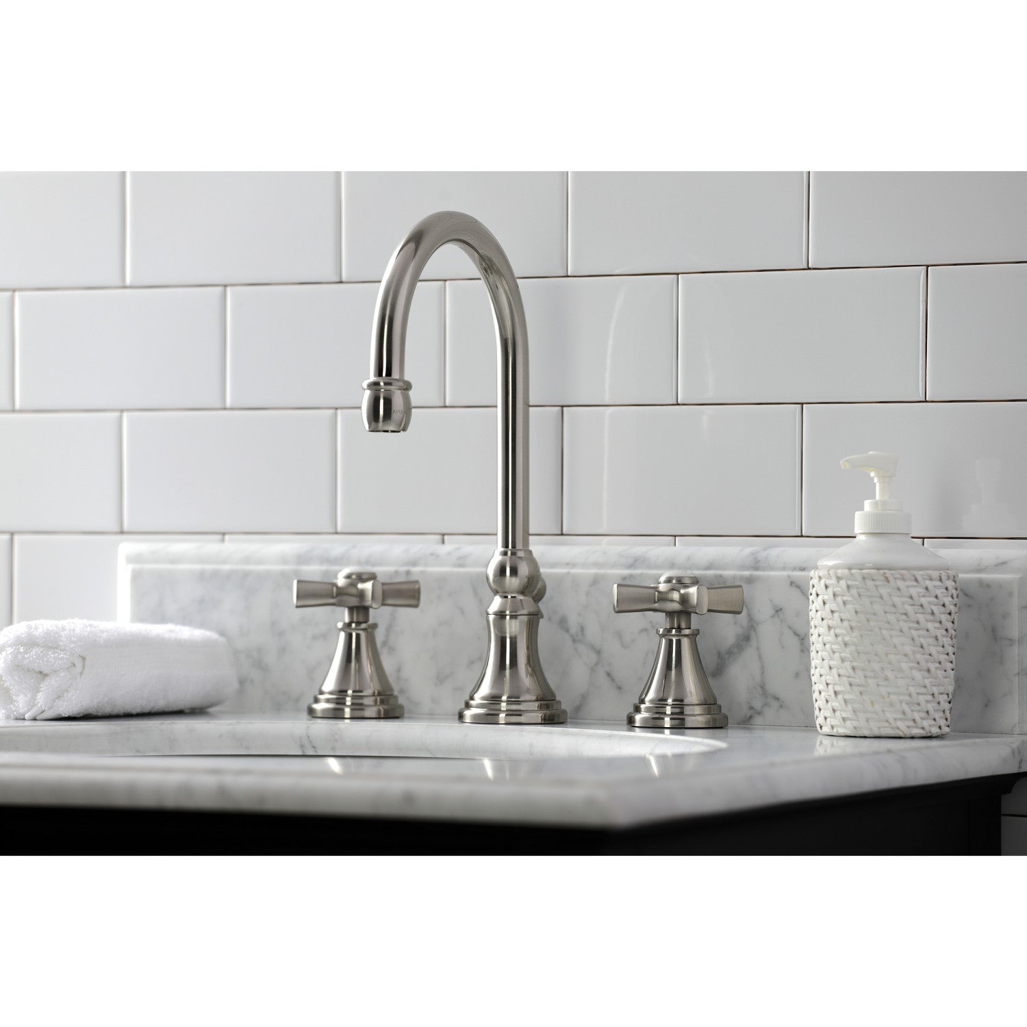 Millennium KS2988ZX Two-Handle 3-Hole Deck Mount Widespread Bathroom Faucet with Brass Pop-Up, Brushed Nickel