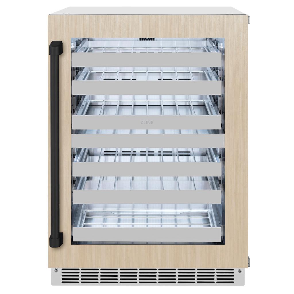 ZLINE Autograph Edition 24 in. Touchstone Dual Zone 44 Bottle Wine Cooler With Panel Ready Glass Door And Matte Black Handle (RWDPOZ-24-MB)
