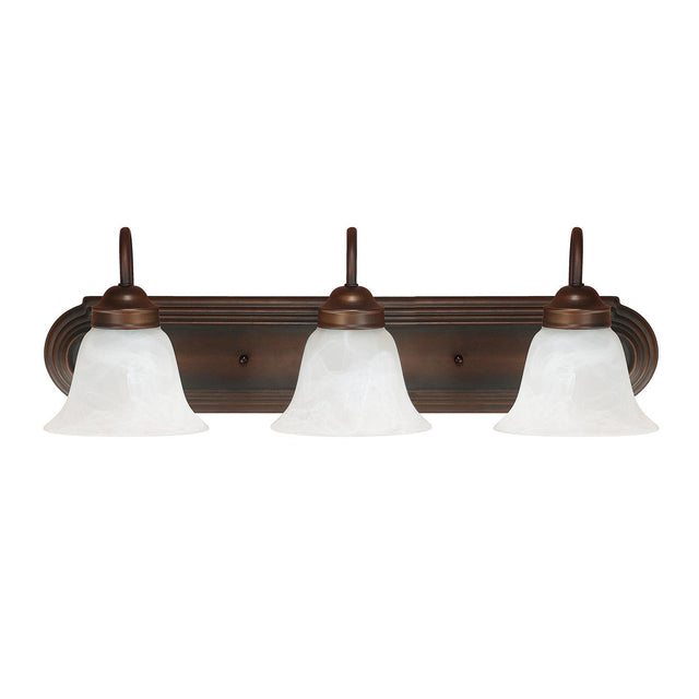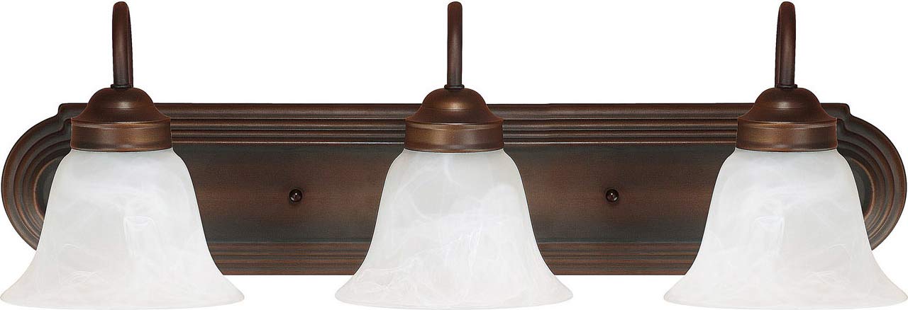 Traditional and timeless the Alabaster 3-Light Vanity has evokes classic charm. Multiple finish and lamping options make this fixture easy to use with a variety of styles.