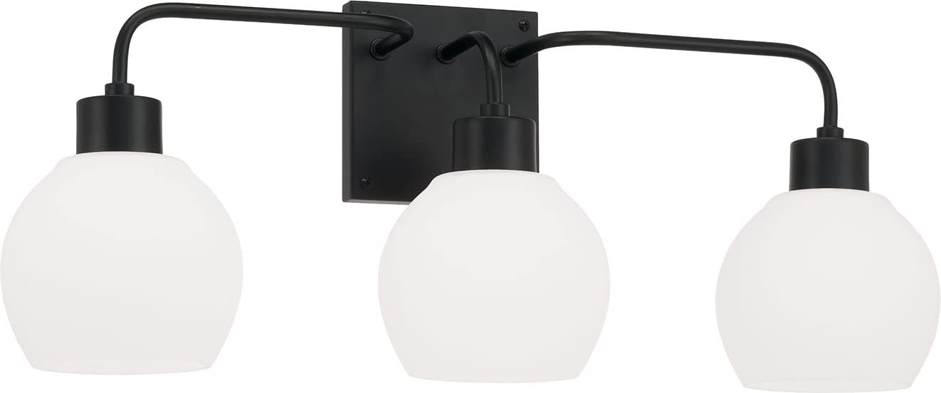 Inspired by mid-century design the Tanner 3-Light Vanity for HomePlace is always on-trend and on-budget. The Matte Black finish and soft white glass complement the clean lines and retro style for a look that works with any design aesthetic. Also available in 2-Light or 4-Light.
