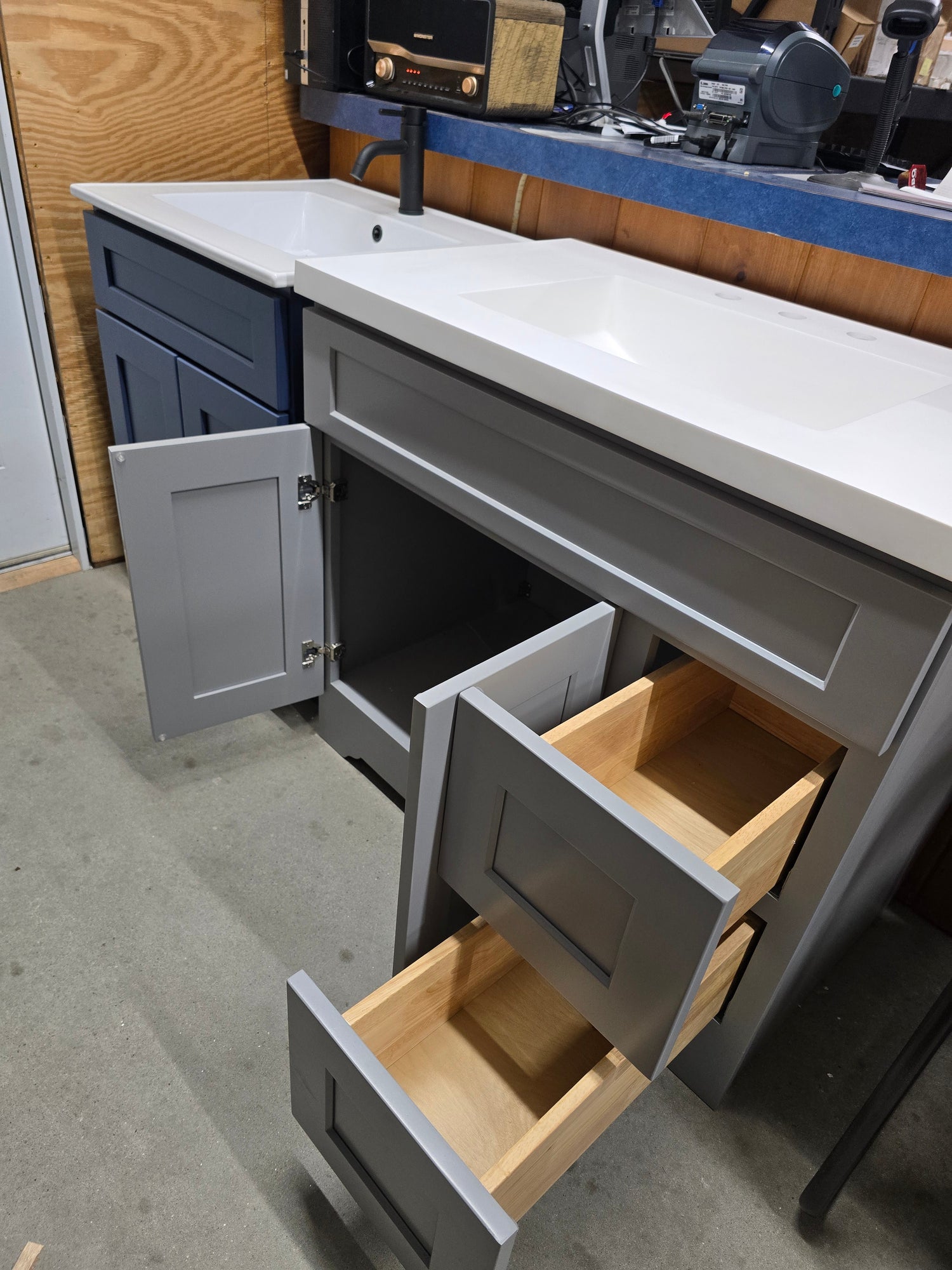36.5" New England Home Goods Light Grey Vanity with Custom White Top
