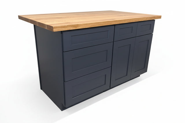 60” Navy Kitchen Island with Wood Top
