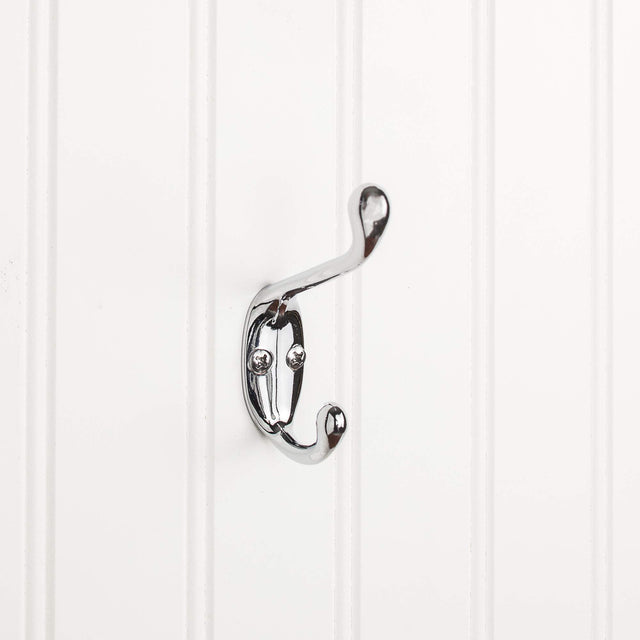 Elements YD40-337PC 3-3/8" Polished Chrome Small Transitional Double Prong Wall Mounted Hook