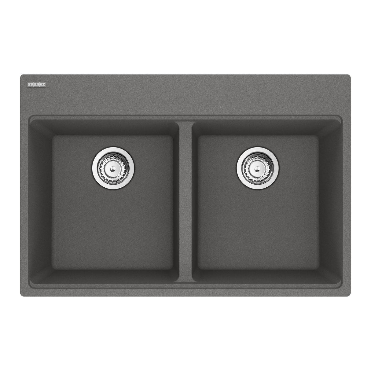 FRANKE MAG6201515-SHG-S Maris Topmount 33-in x 22-in Granite Double Bowl Kitchen Sink in Stone Grey In Stone Grey